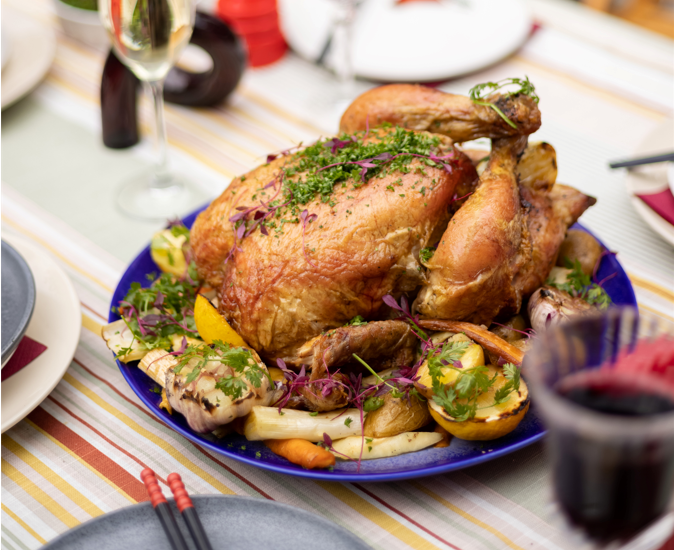 此外,Weber威焙还推出两道虎年春节限定菜单:《年年有余》和《吉祥如意》。两道寓意新年的菜品均由威焙主厨研发,《年年有余》——鲈鱼经传统中式香料腌制后, 先用高温炭火直接焖烤至表皮酥脆再由低温间接焖烤, 最后搭配中式蒜蓉酱。烤鱼入口,皮酥肉嫩,口感轻盈而不失层次,蒜香浓郁,回味甘甜。《吉祥如意》——烤整鸡, 先用各式混合香料腌制入味, 然后炭火低温间接焖烤至表皮油脂融化, 最后高温间接焖烤至外皮金黄酥脆, 最后搭配烤炙过程中经烤鸡汁调味的各式炭烤蔬菜。烤鸡入口香气丰富,焦脆的外皮和肉质口感对比颇为强烈,鸡肉鲜嫩汁水充盈,层次丰富分明,每一口都不失咀嚼的乐趣。