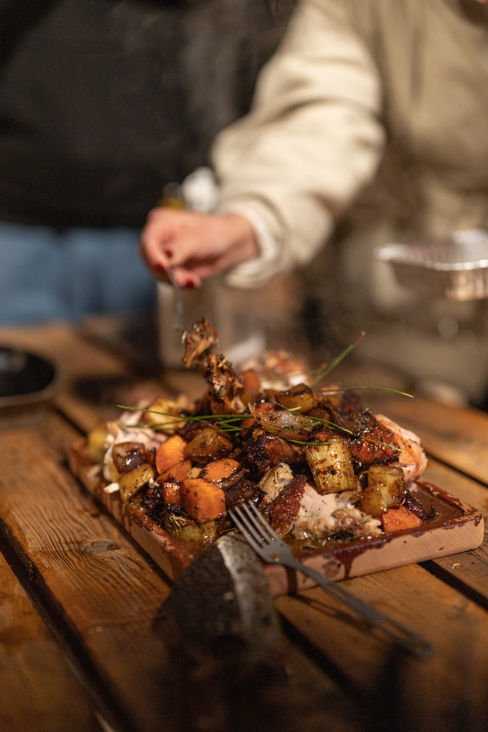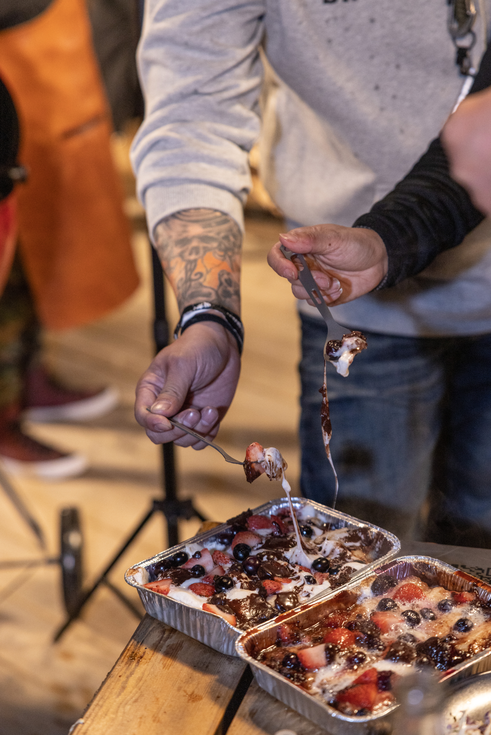 篝火晚会使现场来宾围坐一块,相互畅谈,分享美味