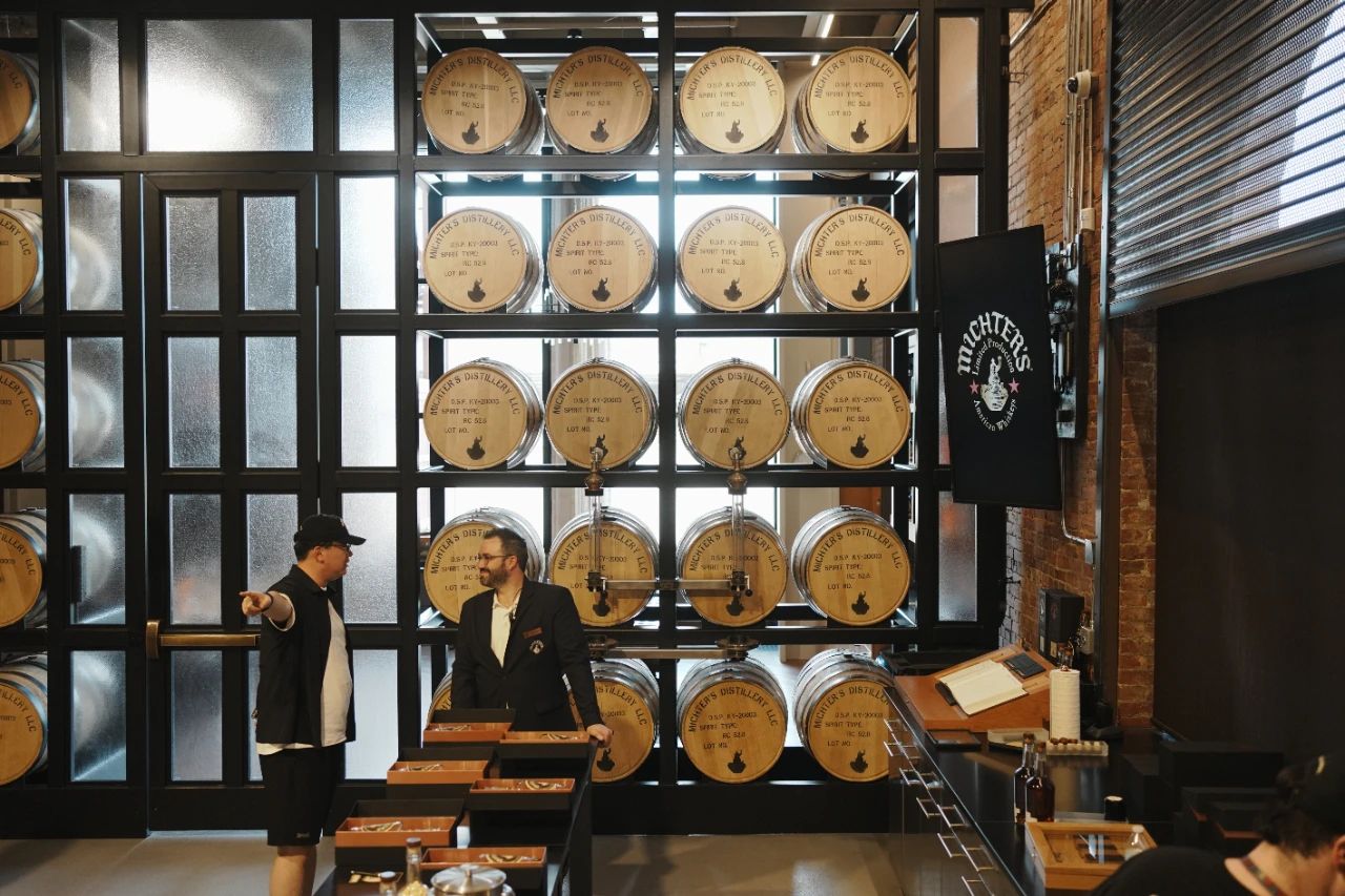有趣的是,对比中国威士忌爱好者更偏好的酸麦芽,在美国最畅销的还是波本威士忌和黑麦威士忌。负责美国市场的员工还告诉我们,比起纯饮,这里更偏好用酩帝诗来做调酒基酒。