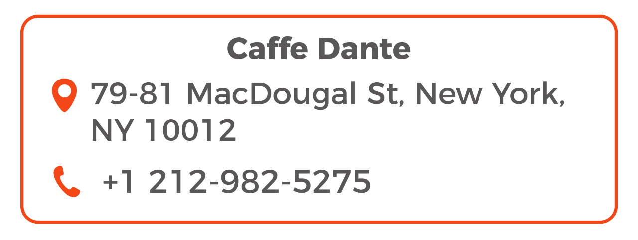 店的历史要追溯到1915年了,几经易主,但一直保留着独特的意大利风情。Dante开业以来,一直深受意大利裔纽约客们的喜爱,目前纽约有两家店,现在洛杉矶店也即将开业。
