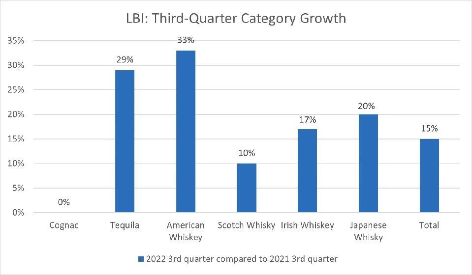人们对于高端美国威士忌的需求也在强劲增长。根据美国蒸馏酒协会(Discus)公布的奢侈品牌指数(LBI),在去年的第三季度,美国威士忌的该指数比前年同期增长了50%,也就是说人们对高价美国威士忌的接受度也在同样增长。