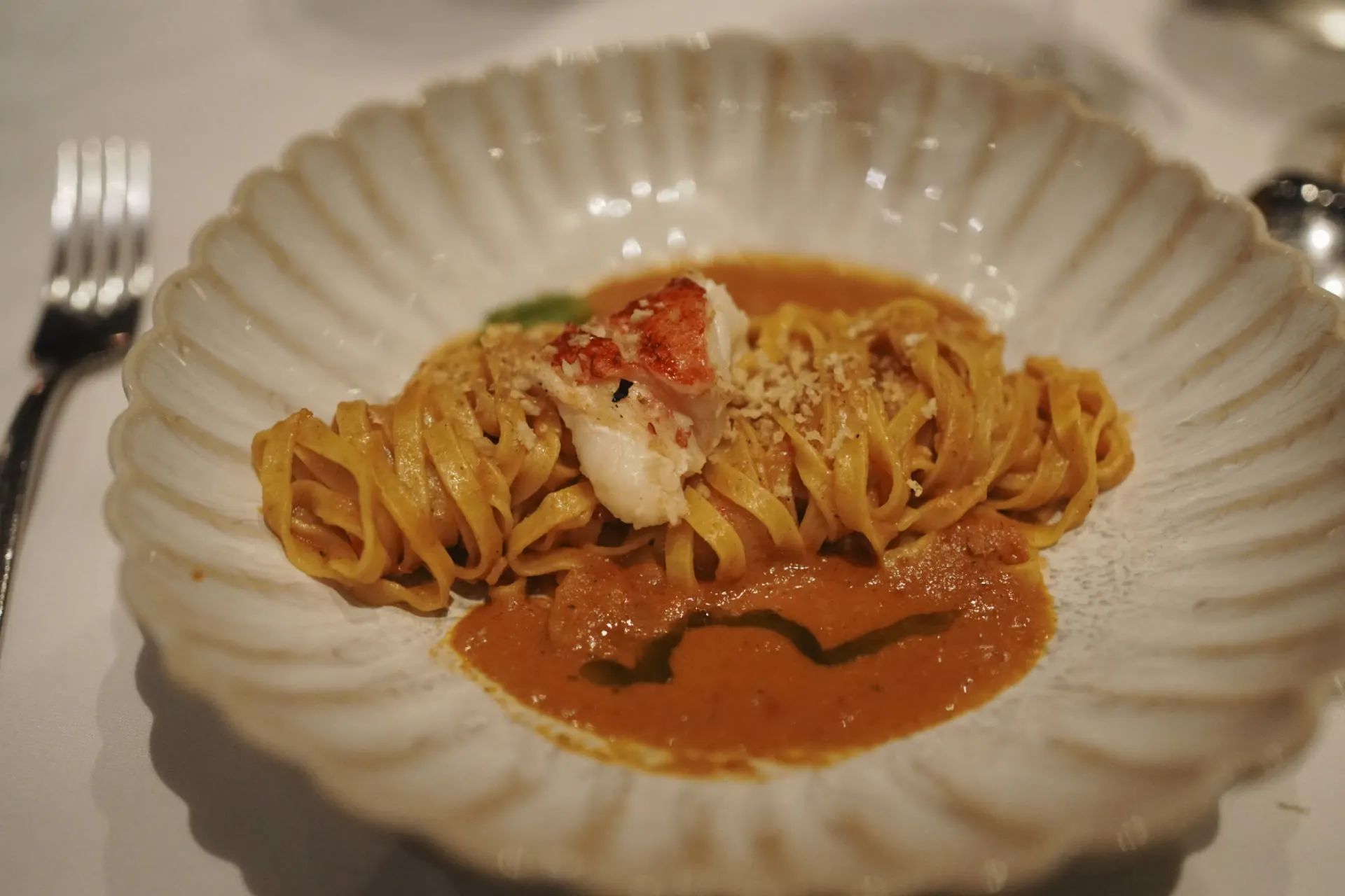 除了牛排,主食的Shellfish意面也很推荐,用了虾和龙虾,调味咸香中带着微微的酸,还有一点舒适的辣,面条也很弹韧,很贴我的中国胃图片