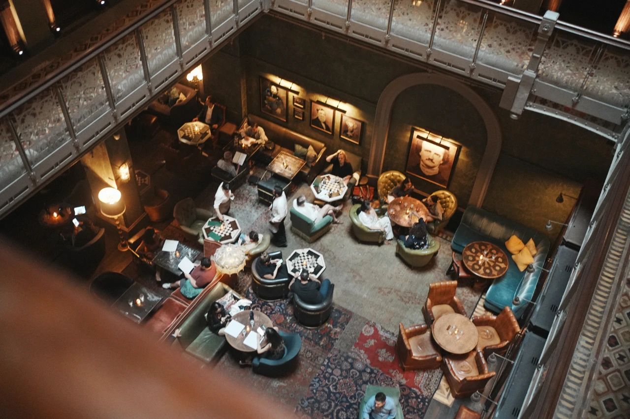 酒店改建的负责团队,保留了老建筑的原始威严和历史痕迹,维多利亚时代的中庭、铸铁栏杆、土耳其地毯、丝绒扶手椅、古铜油灯、转盘电话、羊皮书……进到酒店,就仿佛遁入时空隧道,瞬间穿越回了100年前的纽约。