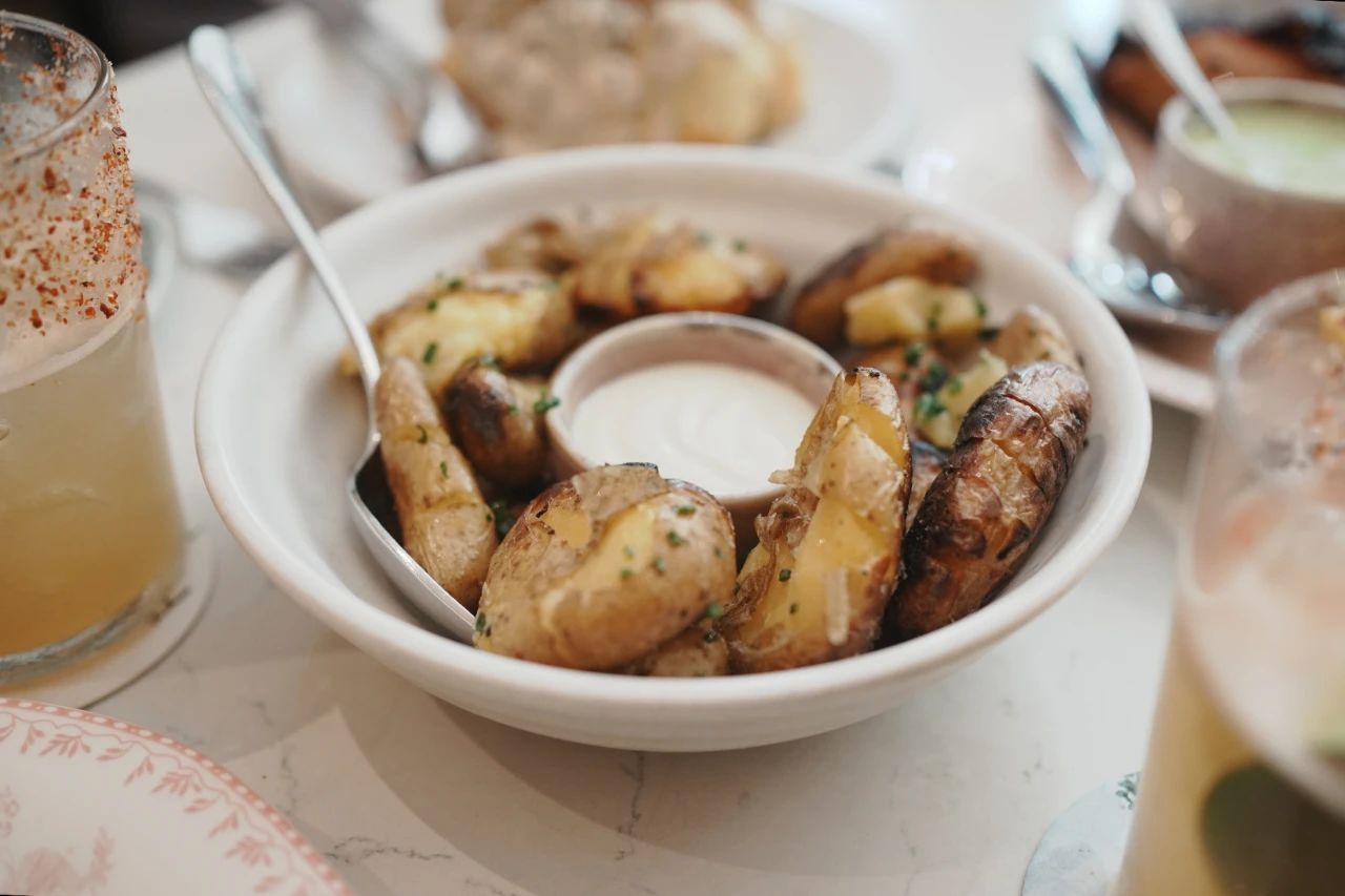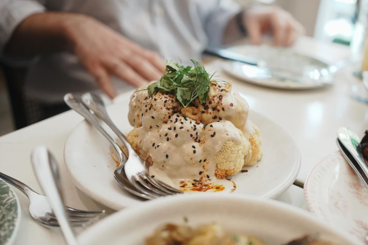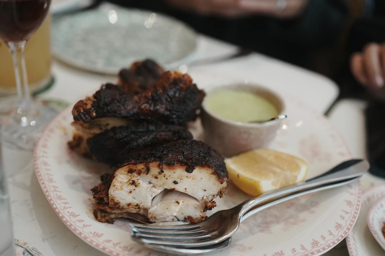 加了足量芝士的番茄烩西葫芦花,麻辣又juicy的烤鸡,搭配咸酸奶酱的炭烤整颗花椰菜…finger food的烤小土豆,烤辣椒,烤玉米,虽然第一次吃,但总觉得有一丝奇妙的亲切感。