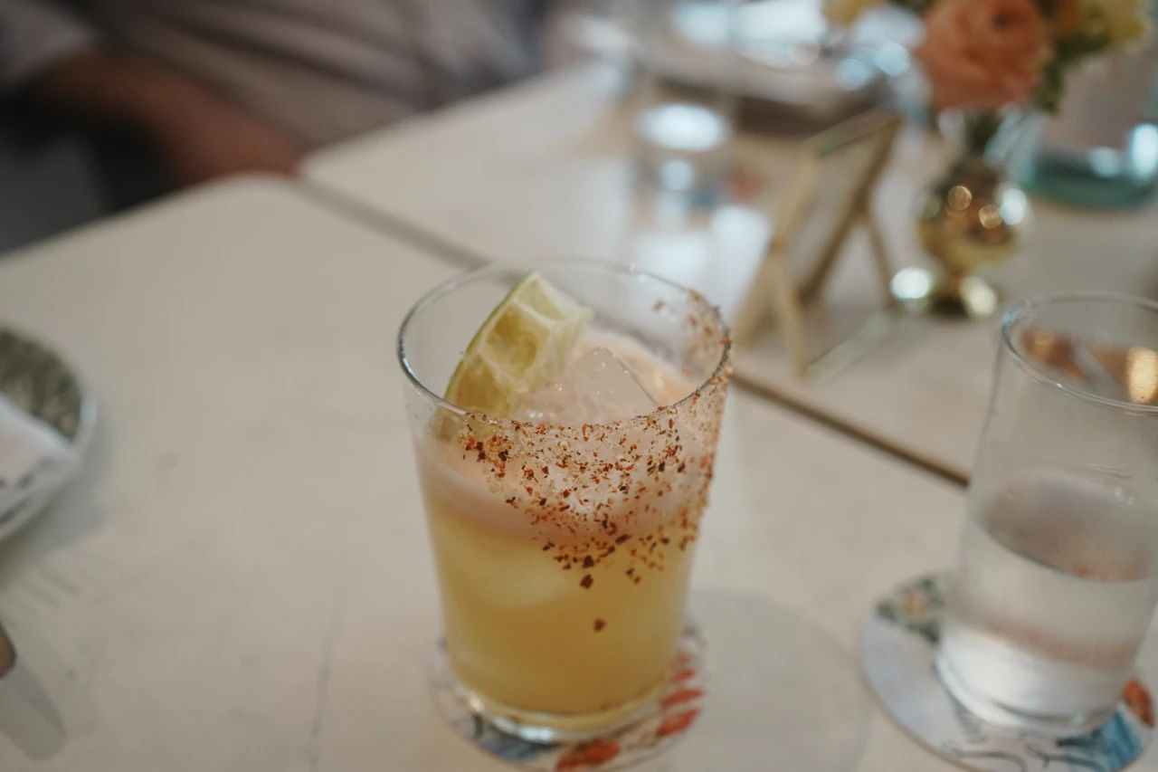 用mezcal和tequila做基底调制,加入圣培露葡萄柚气泡水、墨西哥胡椒、盐,恰到好处的辣度、酸度、咸味和烟熏感,简直就是为餐食量身打造的!