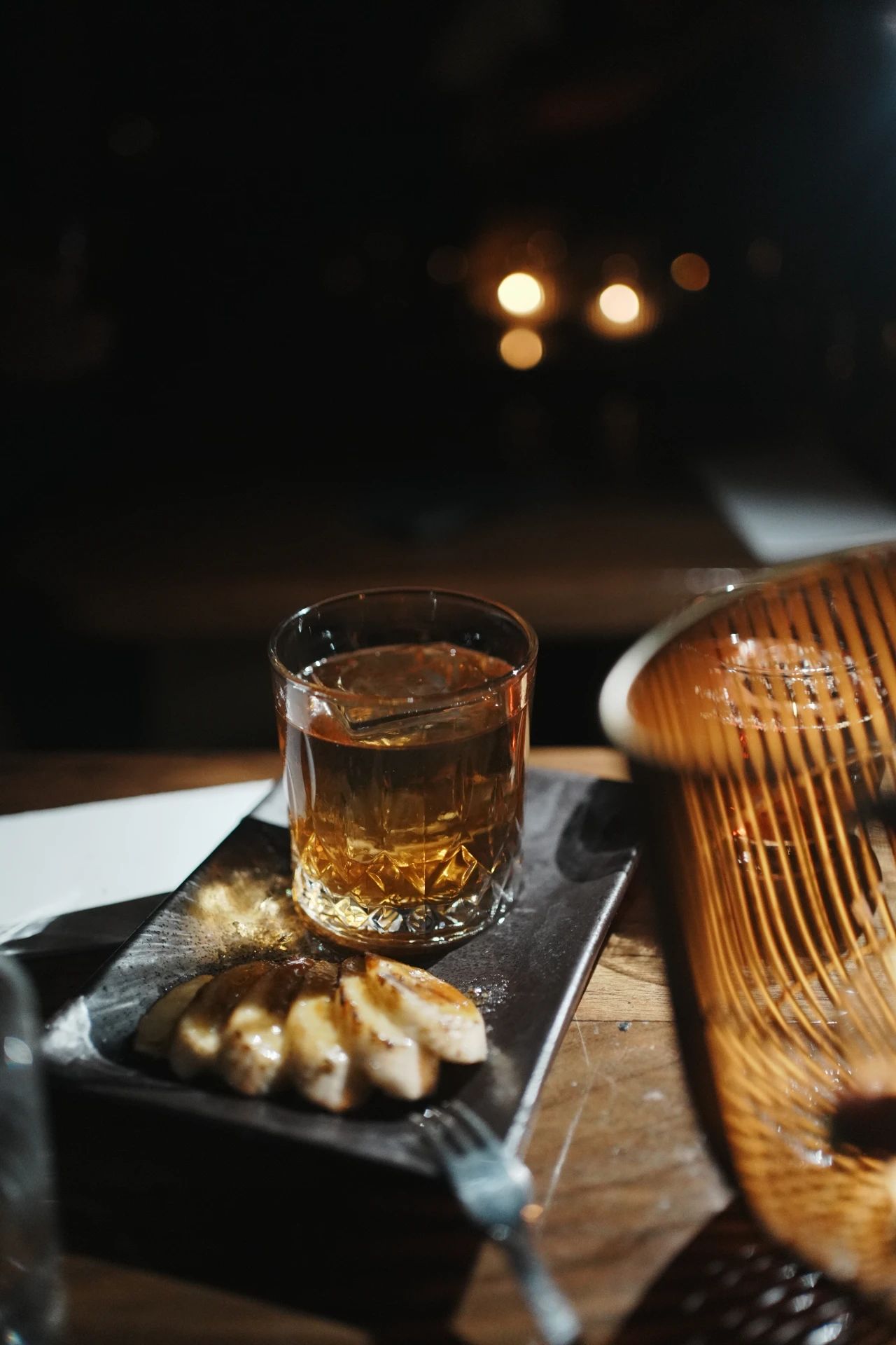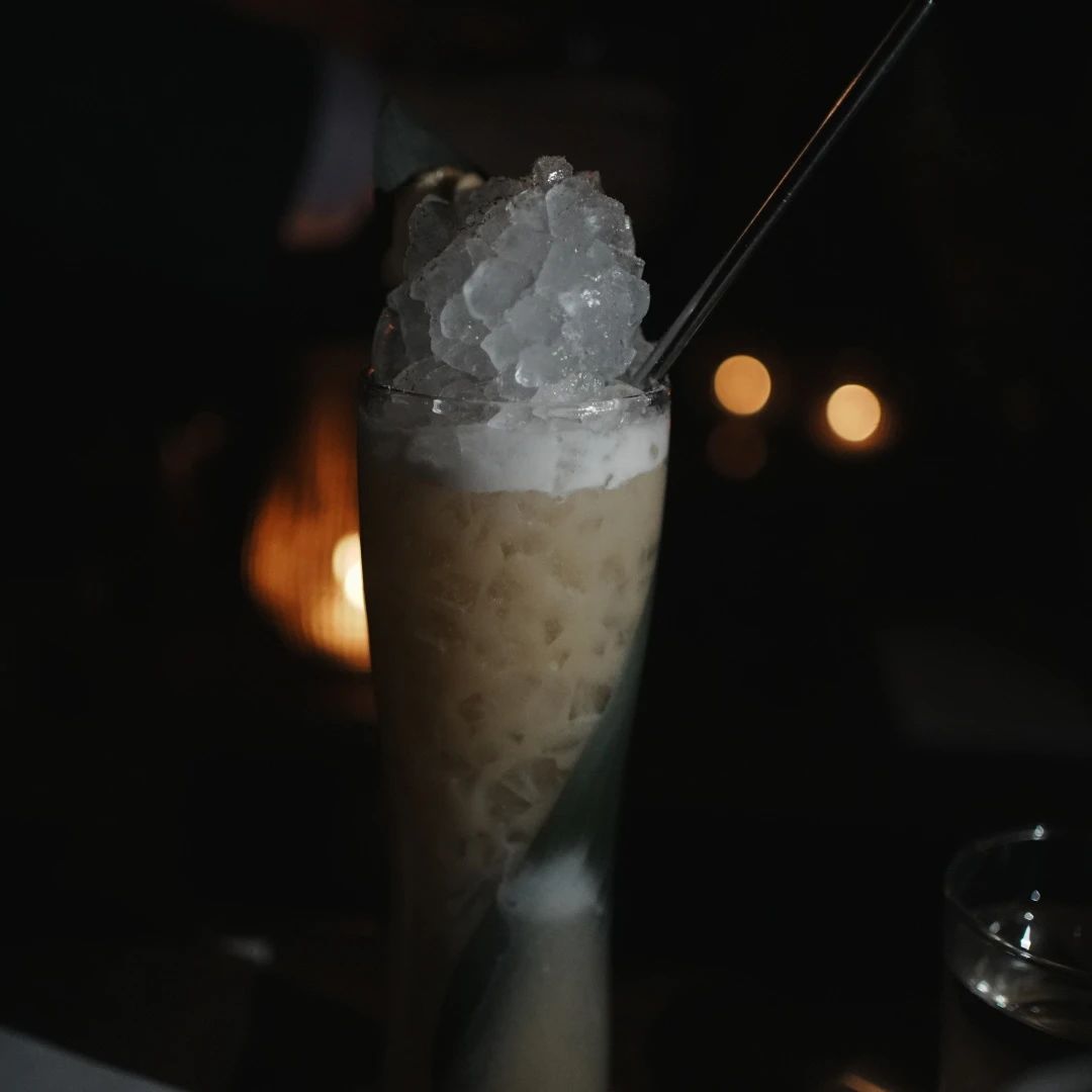 朗姆基酒的Currents & coils,入口是满满的热带水果风味,Impossible Idea用了mezcal、朗姆、雪利酒等多种基酒,入口柔顺甜度很高,酒精感也很重,先吃一块酒精烤过的黑糖香蕉片,再喝一口酒,甜润的感受会加倍放大。