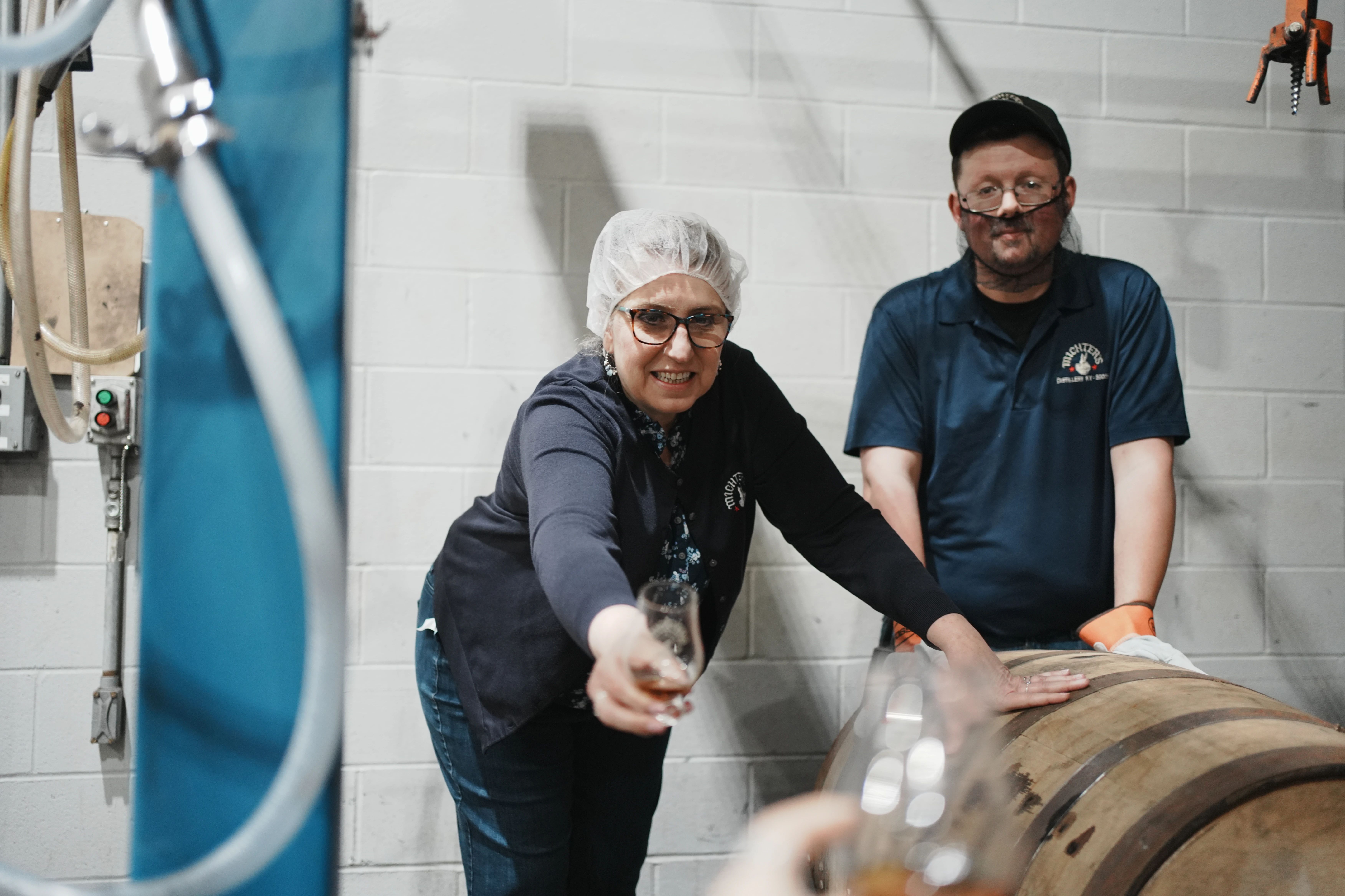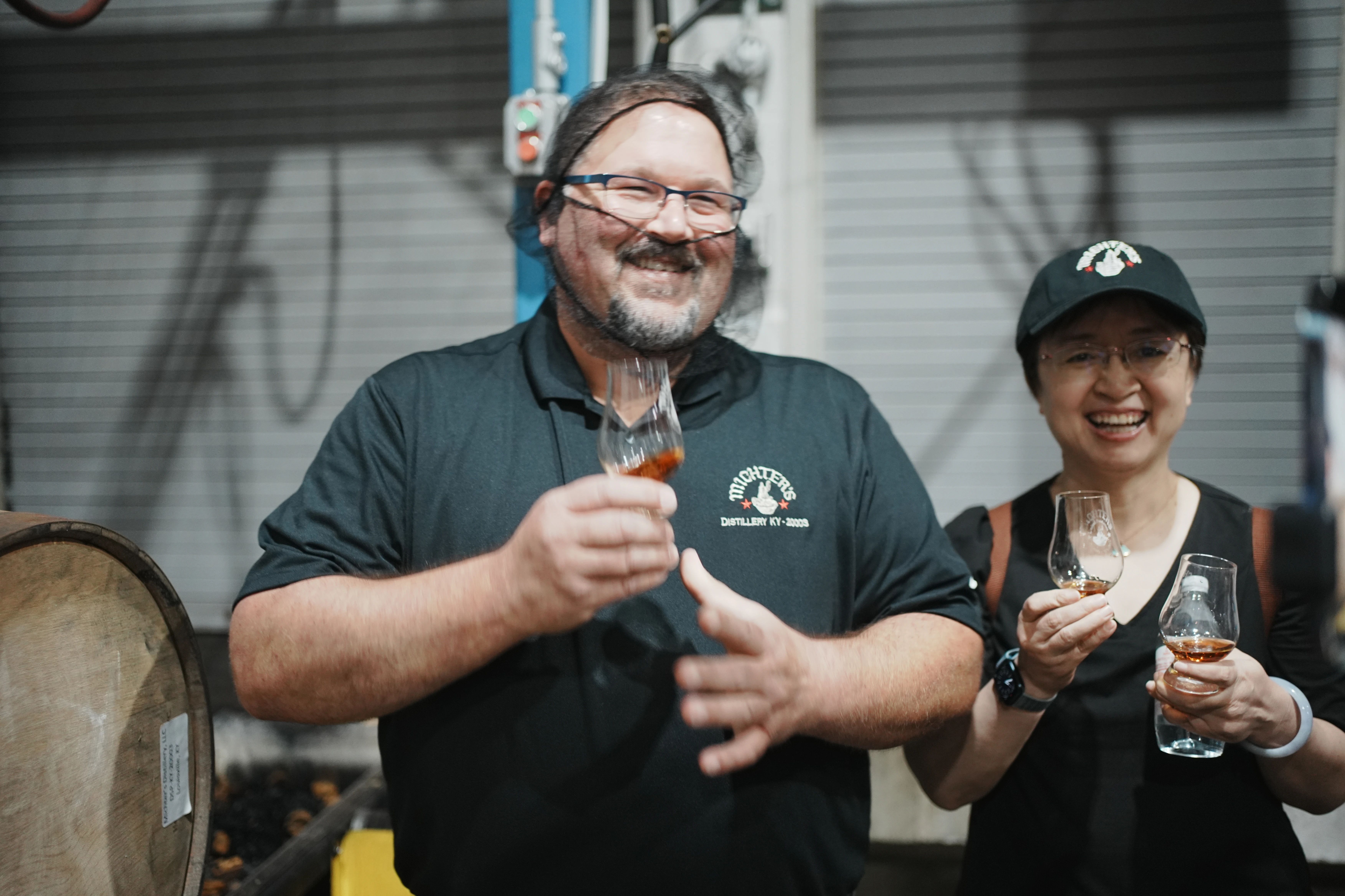 刚到酒厂,就见到了两位灵魂人物,首席蒸馏大师Dan Mckee和首席熟成大师Andrea Wilson,大佬亲自接待,受宠若惊。除了两位大佬,酩帝诗在肯塔基州的三处产业(两个酒厂加一处谷物农场),现在已经有100多名员工。