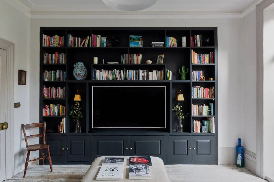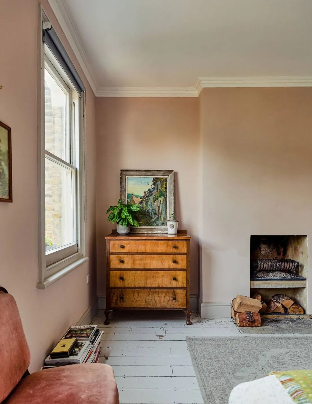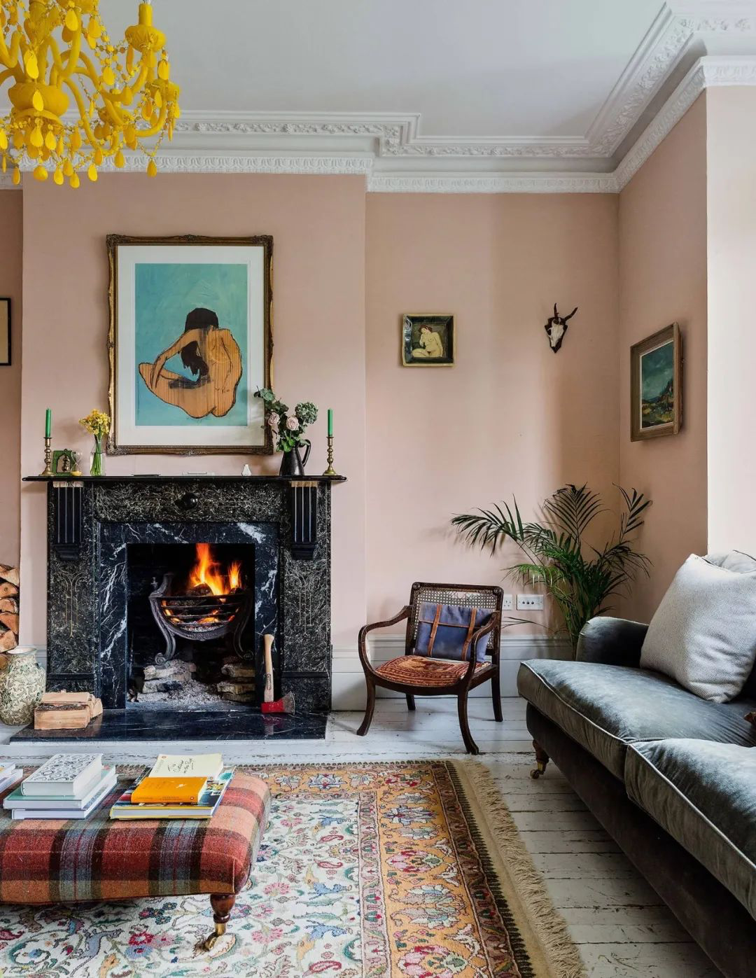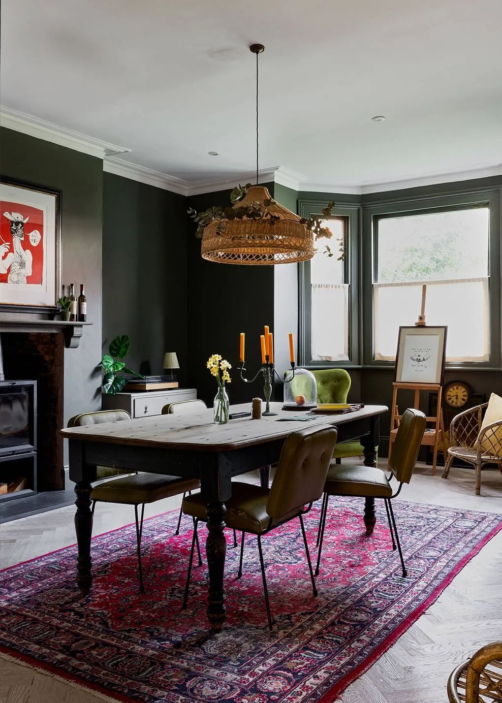 餐厅是房子里最暗的房间,被漆成深灰色,以适应Chris想要营造的古典文艺风格。当夜晚餐厅被烛光照亮的时候,这个房间透露出一种狄更斯式的故事感;客厅的墙面则涂上了Edward Bulmer的Jonquil色彩,它和原本房间里保留下来的黑色大理石壁炉搭配完美。
