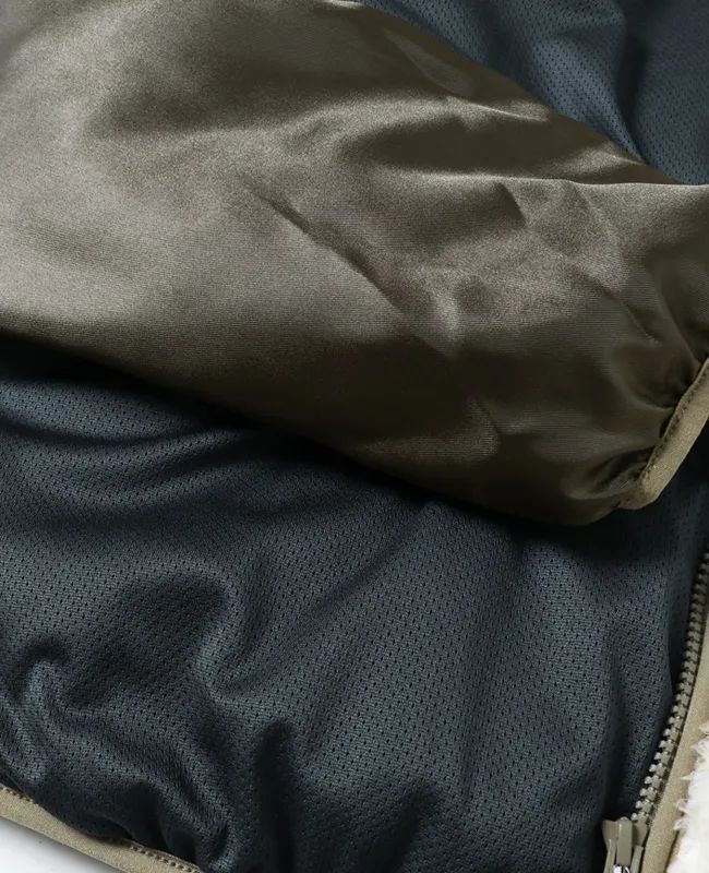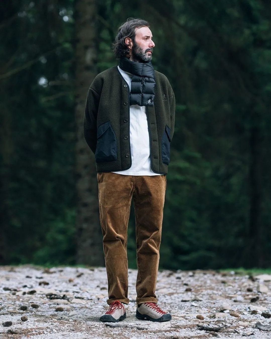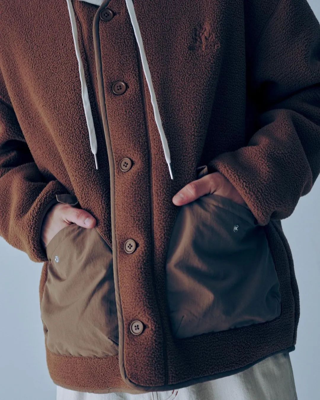 GRAMICCI在2021 F/W中发售的这款复古抓绒内胆夹克以军事内胆为蓝本打造,大尺寸的尼龙口袋设定也让其有了一定的外搭属性。