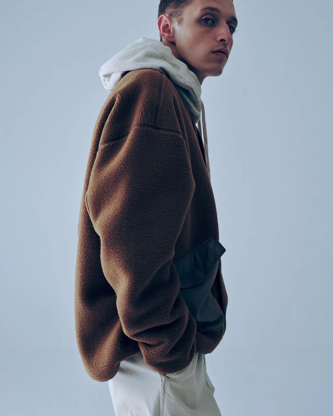 「摇粒绒」,「羊羔绒」以及「珊瑚绒」在当下无论从字面还是实际面料的御寒表现都没有太大的区分,无论品牌称其为FLEECE还是FIBERPILE,成分大多数情况下也都是聚酯纤维,只不过在呈现出的面料风格上有些许分别,所以如今大家也约定俗成一般笼统地称其为「抓绒」单品。
