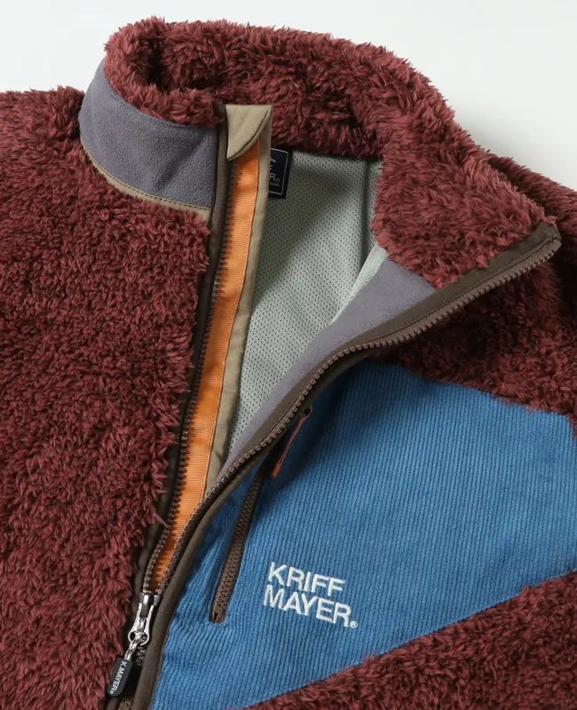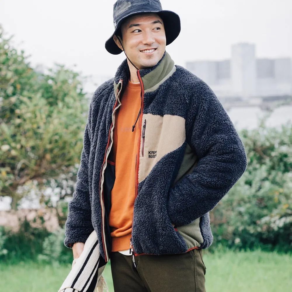 与Ben Davis一样,在被日本市场重新诠释后KRIFF MAYER成为如今为数不多兼顾性价比与复古设计感的品牌,同时具有一定机能属性考量。随着抓绒单品的大热,KRIFF MAYER也将其作为每季的定番也呈现了如今的流行趋势:大廓形,重磅抓绒物料,撞色拼接设定。譬如在2021 F/W中亮相的这款户外抓绒拼接夹克。