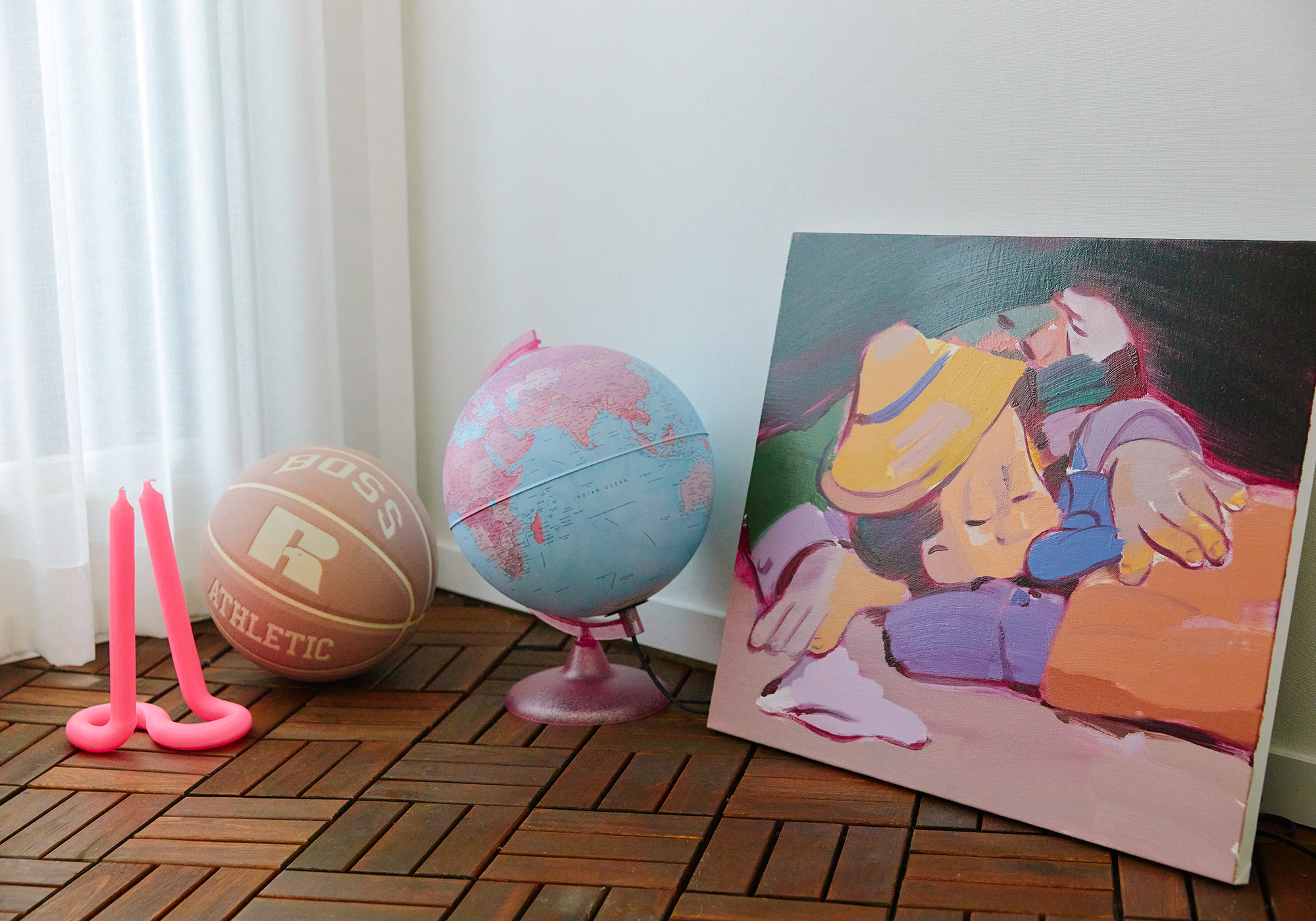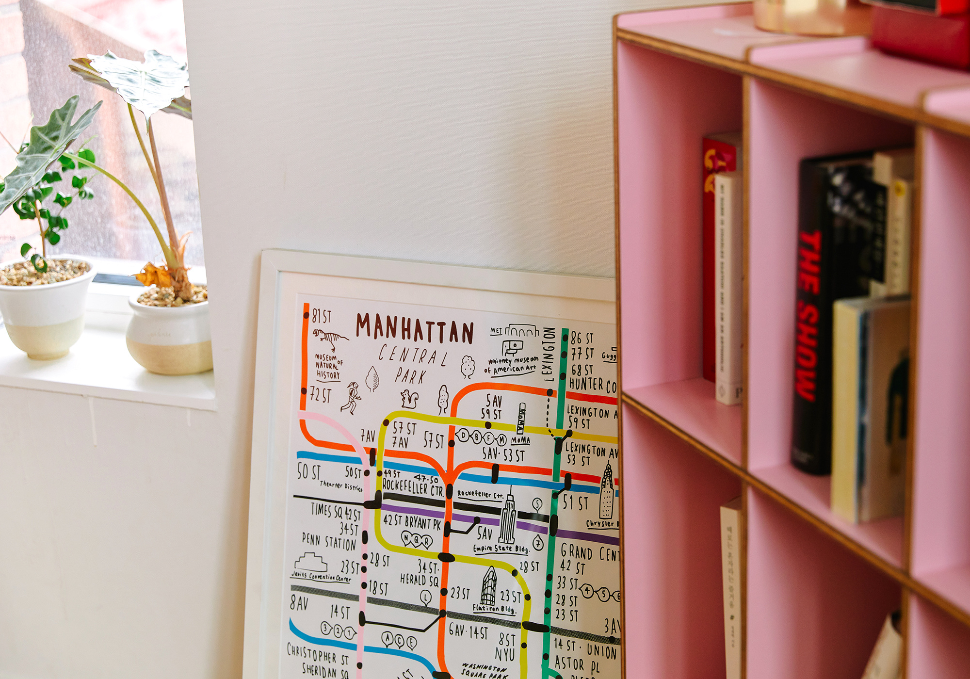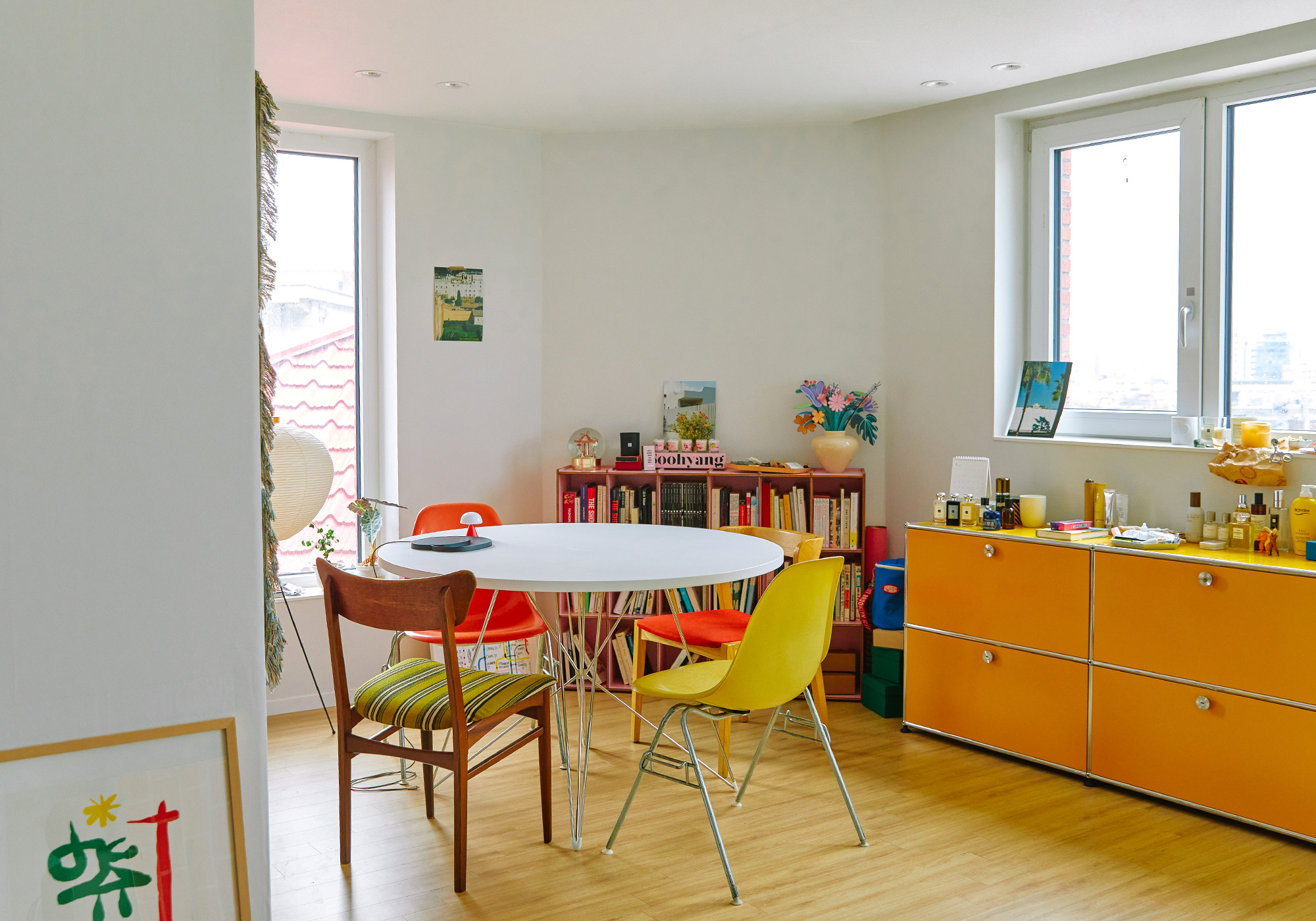 而在 Han Seok dong 的家中,我们随处都可以看到孟菲斯风格的影子,无论是从家具到软装,包括艺术画作的选择,都在打破传统家居中的装饰节奏,看似繁复,实则为一个审美体系。
