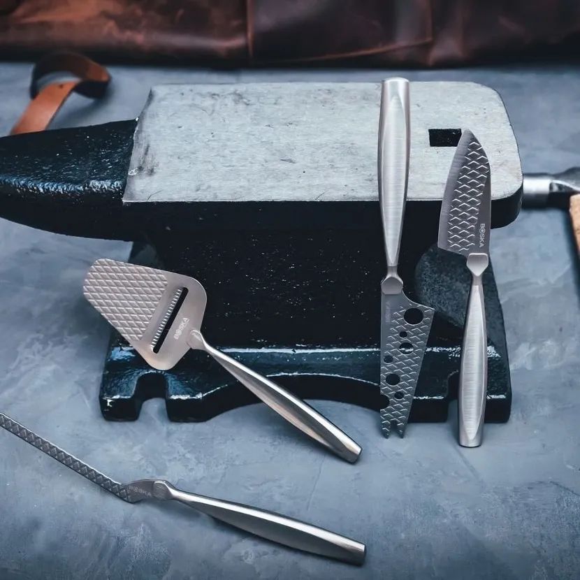 Boska是来自荷兰的餐具品牌,起源于高达奶酪的发源地高达小镇,由于当地奶酪产业发达,当地的铁匠也会制作不同样式的奶酪刀来售卖。