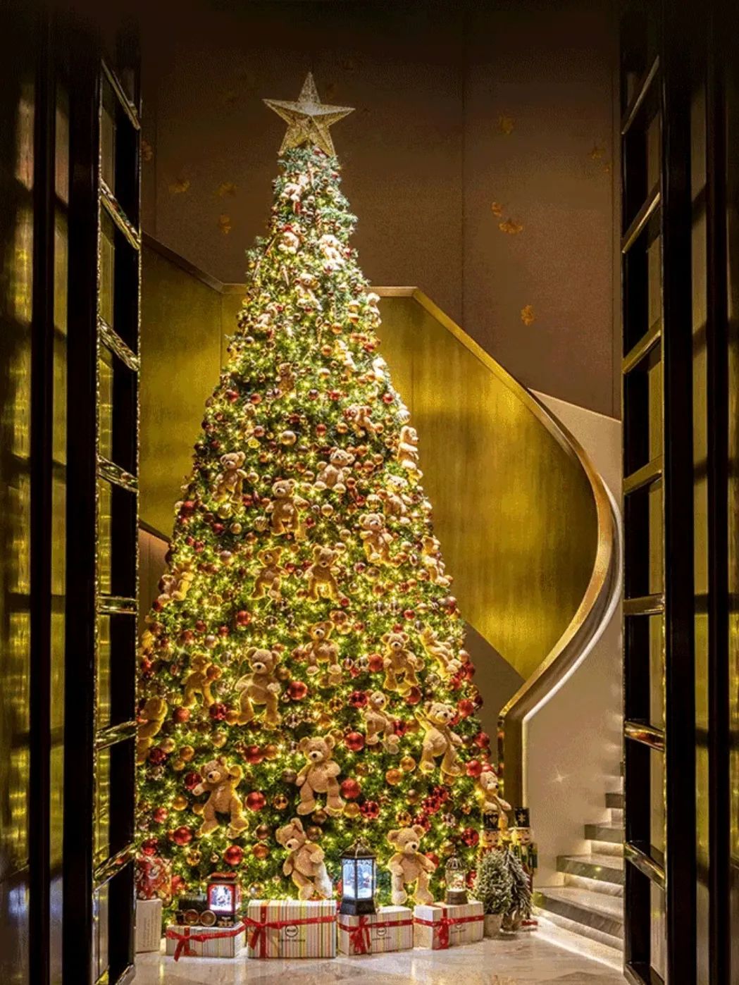 华尔道夫的圣诞树,哪怕只是远远看一眼,也会被它的美貌惊艳住。今年圣诞,华尔道夫携手德国百年玩具品牌 STEIFF 在酒店「羿庭」共同打造了一颗巨型泰迪熊主题圣诞树,泰迪熊造型萌态可掬,加上红色彩球装点,光影斑斓璀璨,让人忍不住想要走上前与它合影几张。