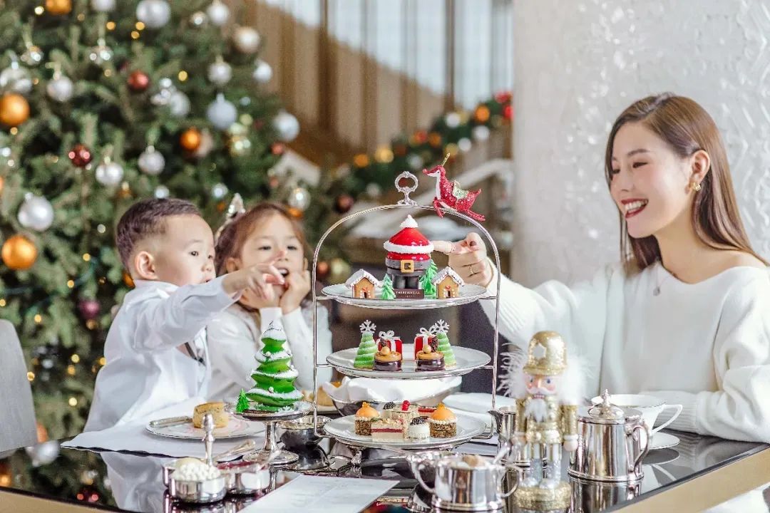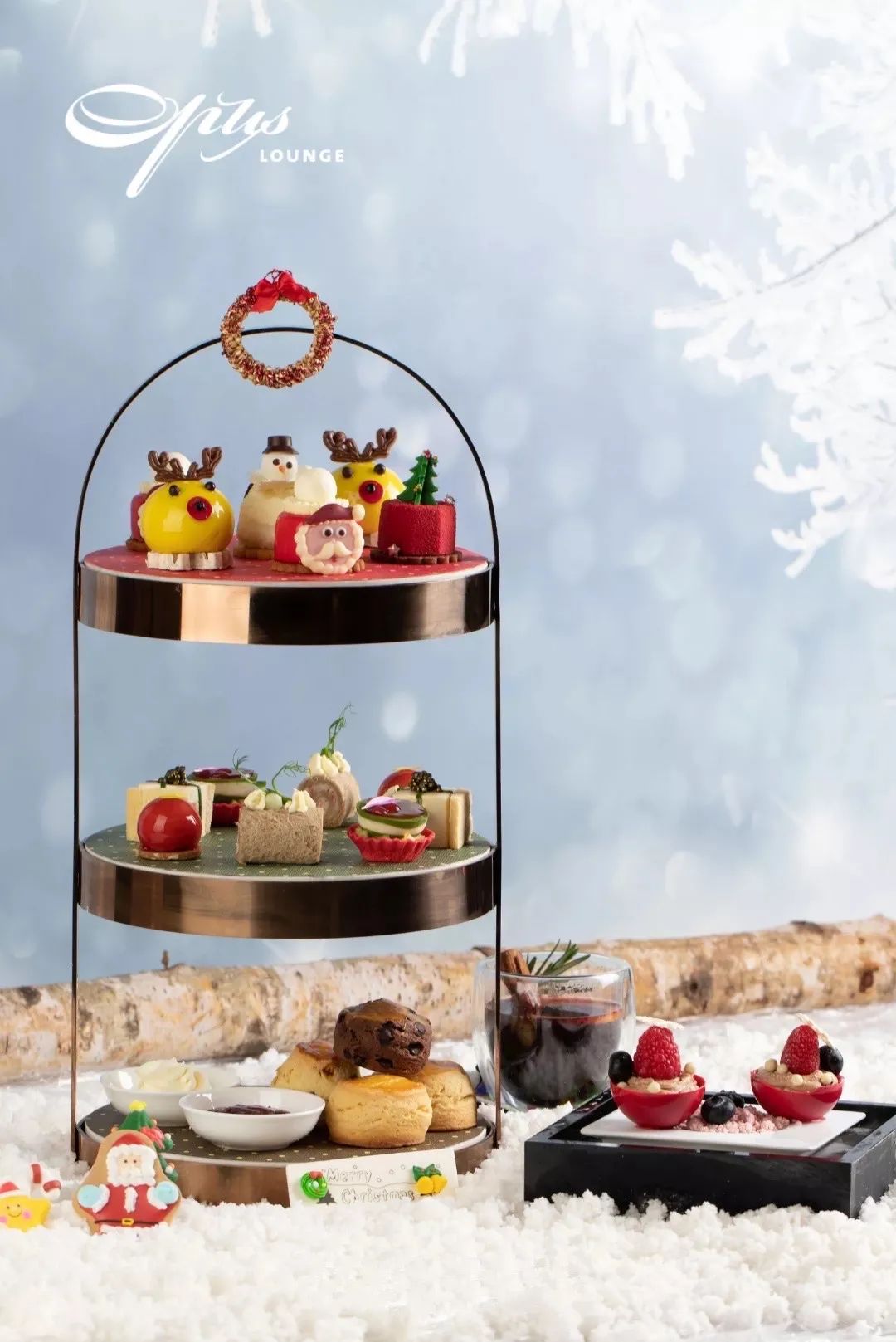 大堂酒廊的「圣诞限定下午茶」,颜值超高,各式精致甜品与咸点,芬芳诱人,蟹肉树根卷、草莓芝士蛋糕等多道小食搭配热红酒,彷佛置身于童话王国一般。吃完之后如果还不尽兴,再买一份由行政饼房厨师长白帆精心制作的传统甜品带回家,送朋友或是自留,都好。