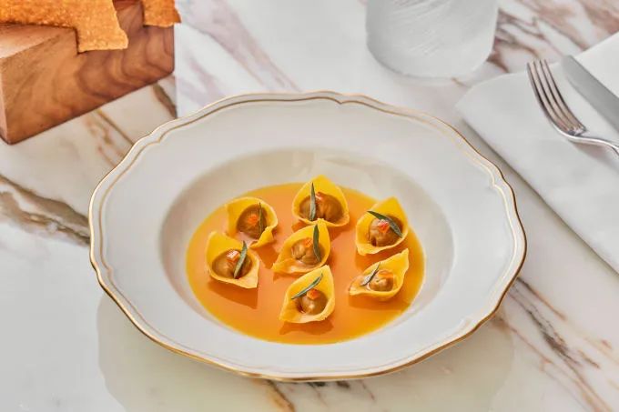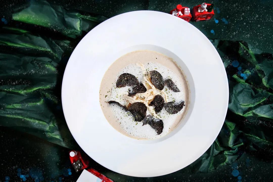 位于酒店一层的 IL RISTORANTE·NIKO ROMITO 为平安夜与圣诞日准备了精致的「五道式晚宴」,一杯香槟及巧克力。意大利精选头盘打头阵,自制牛舌帕玛森芝士饺子配柑橘及南瓜汤、银鳕鱼配杏仁及鱼子酱、灸烤牛里脊配蘑菇酱、黑松露及土豆蛋黄酱,外加一道奶黄泡芙配温巧克力汁,甜蜜开启圣诞专属的幸福感。