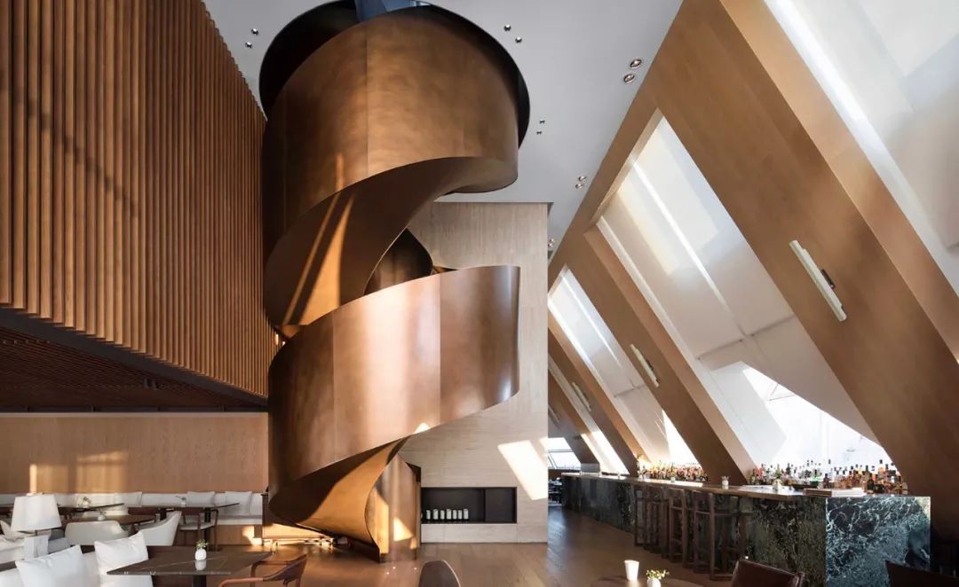 让·努维尔设计的建筑充满简洁的美感,二层与三层的巨大玻璃镜厅,从外看会反射出蓝天白云,当你站在里面,可以环视整个外滩江景。