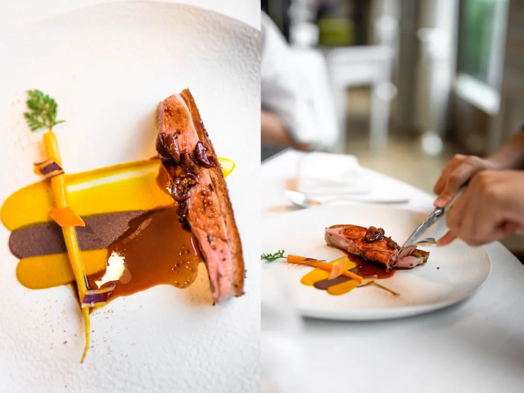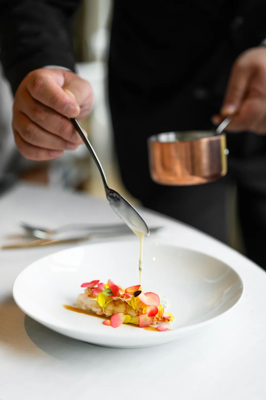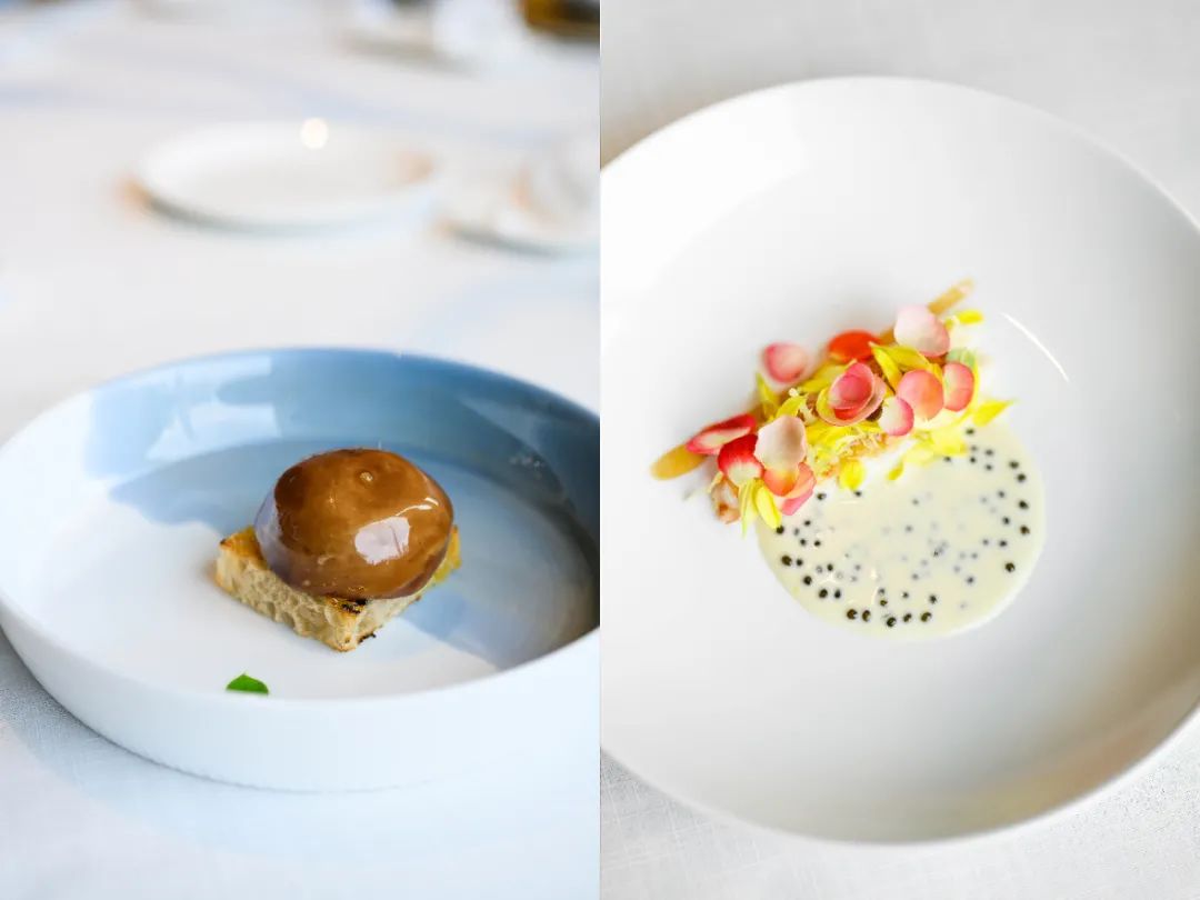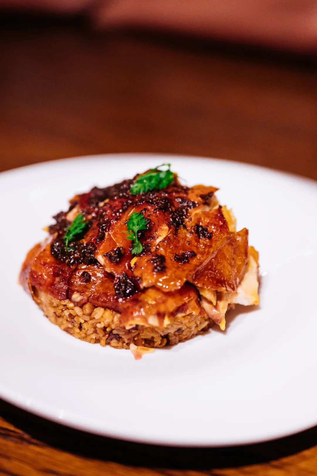 Canton Disco 呈现一种现代风格的广东菜,chef 尝试了很多好玩的食材搭配——香槟与冬瓜、鱼羹漂浮岛、红曲鳕鱼饺、香草羊排搭配鲍鱼……