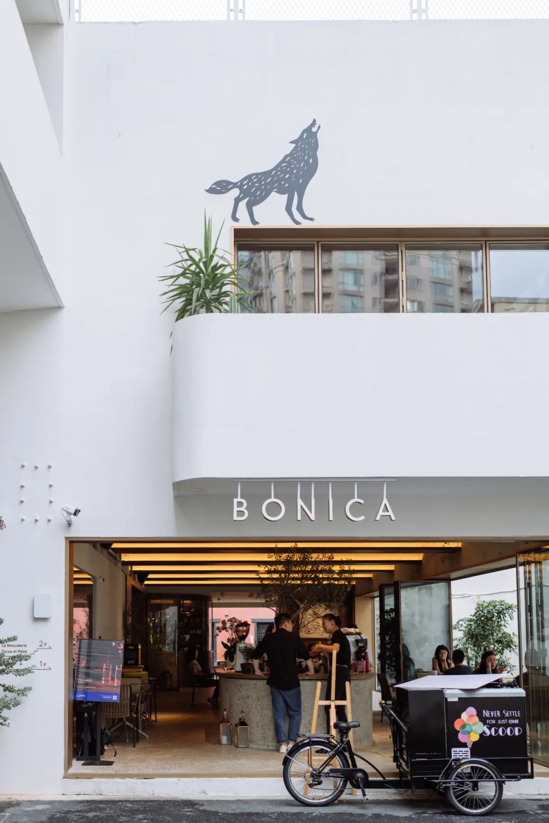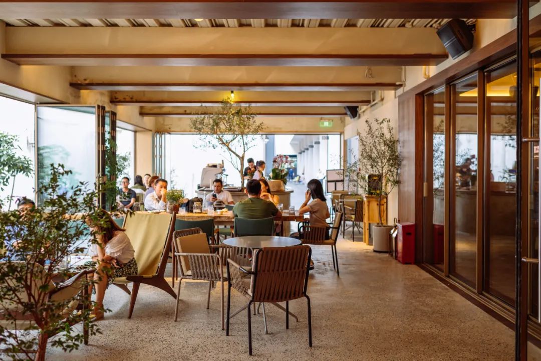 一层是餐厅和咖啡,二楼是 Lounge 和酒吧,周末可以从白天吃喝到晚上。