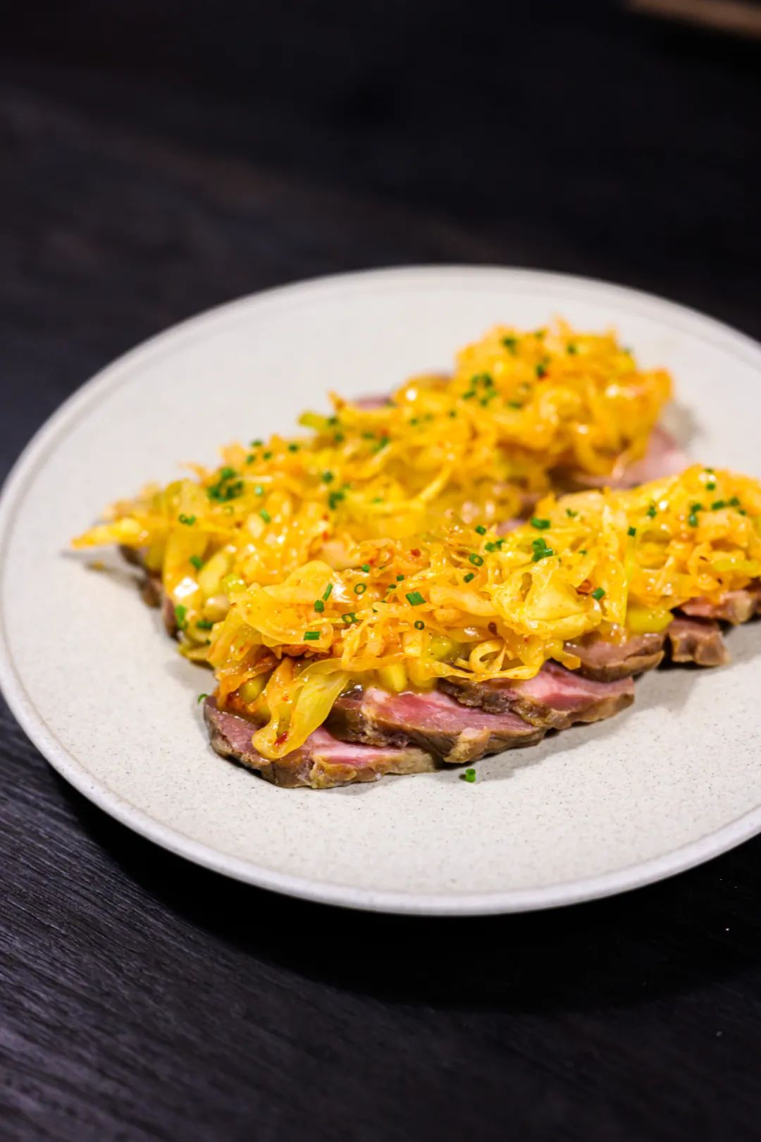 酸菜牛舌:自家制酸菜,搭配慢煮牛舌,还加塞了芒果粒,就很讨喜。
