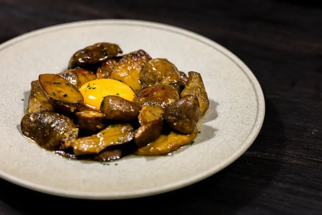 蛋黄牛肝菌:菌子季的限定菜品,块状牛肝菌用雪莉酒浸渍,留下甜甜的酒香。