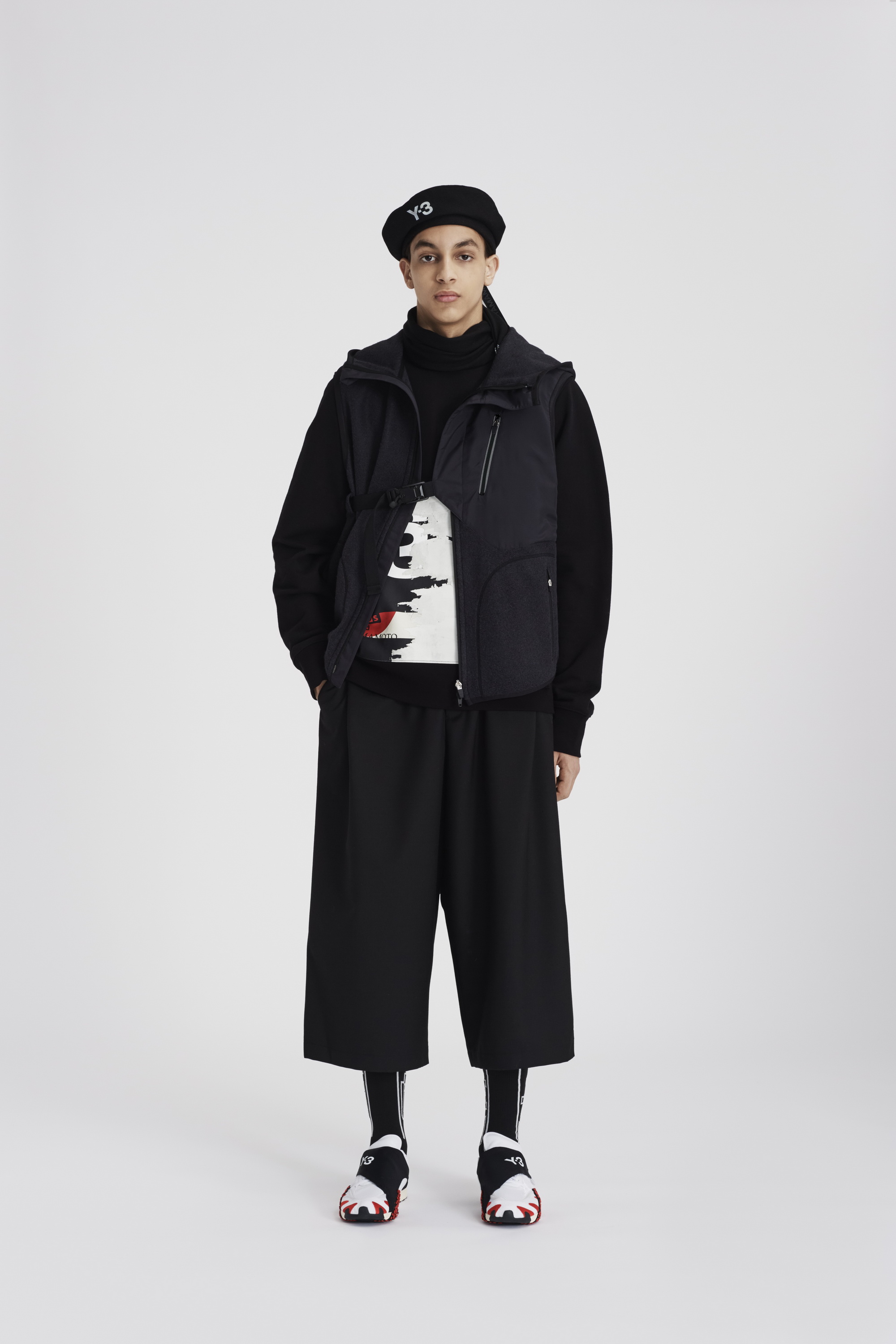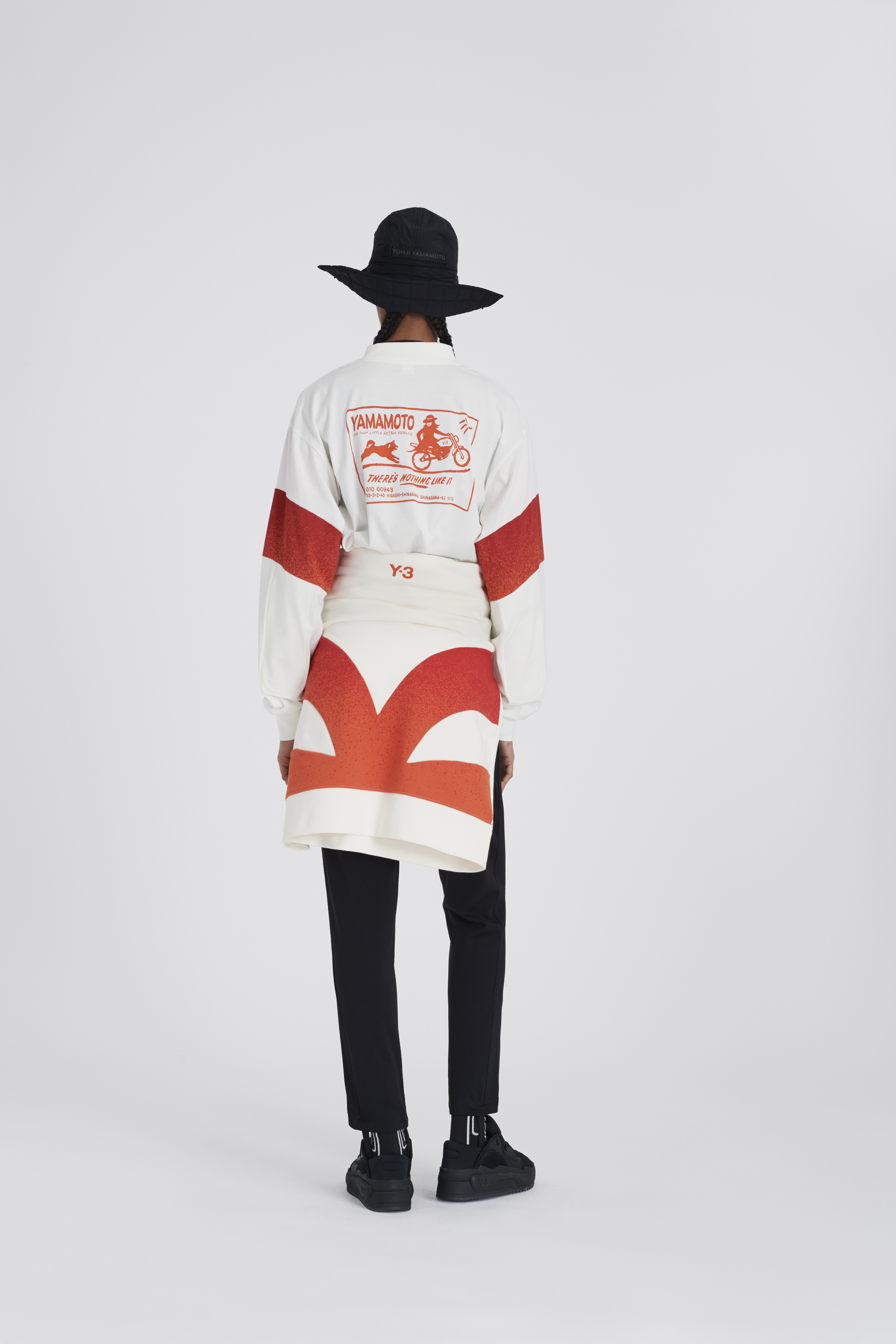 在Chapter 2 第二章中,Y-3 继续强化了传统运动精神与都市运动态度的融合。在篮球和击剑运动的流畅动态中,第二章组合了一系列宽松的廓形和特立独行的剪裁元素。通过非常规性的面料混用以及柔和的色彩组合,不对称的设计细节与隐藏的三线条品牌元素,服装产品完成了对当下运动风格的淋漓展现。此外,本章中充盈的击剑运动灵感图形元素亦带有极强的山本耀司语义。反观鞋履产品,在Chapter 2 第二章中,拥有夸张鞋跟设计的全新鞋型Y-3 ORISAN和升级版Y-3 FYW S-97 II则是最为惹眼的重点鞋款。