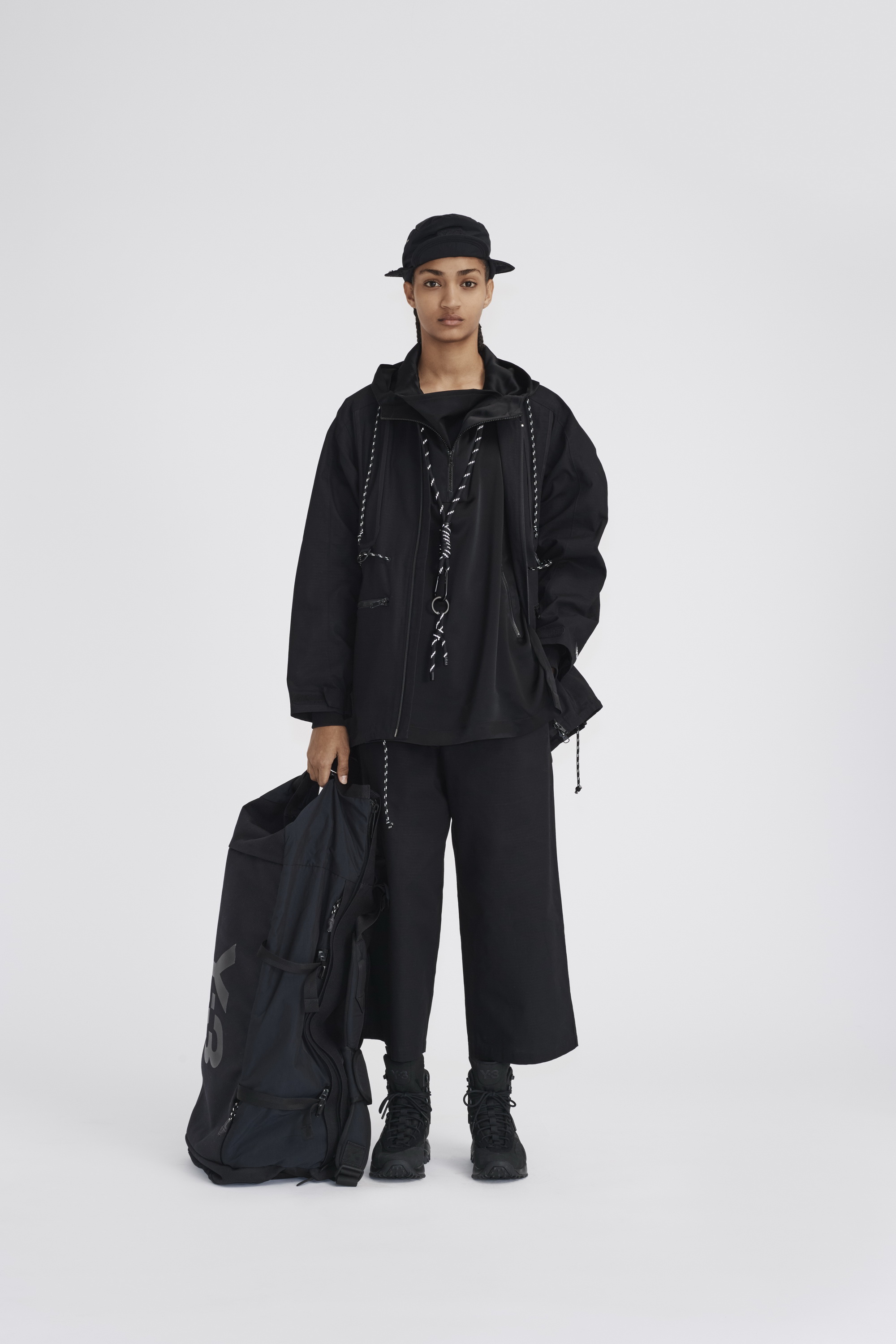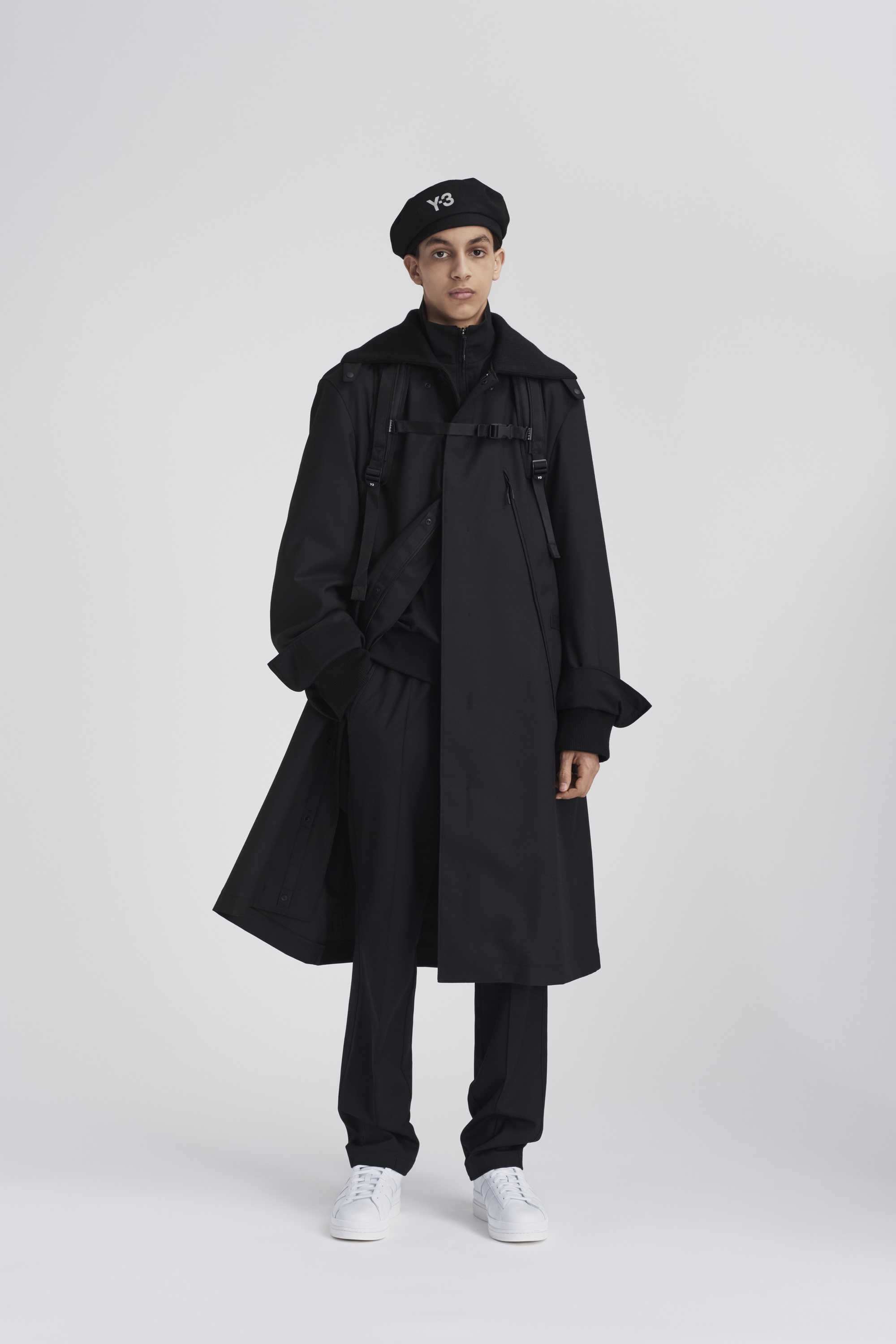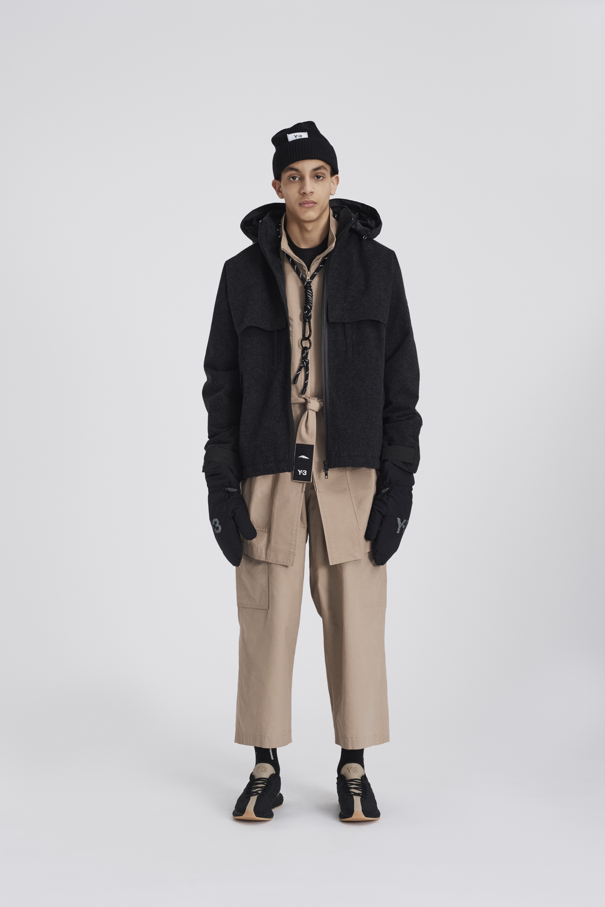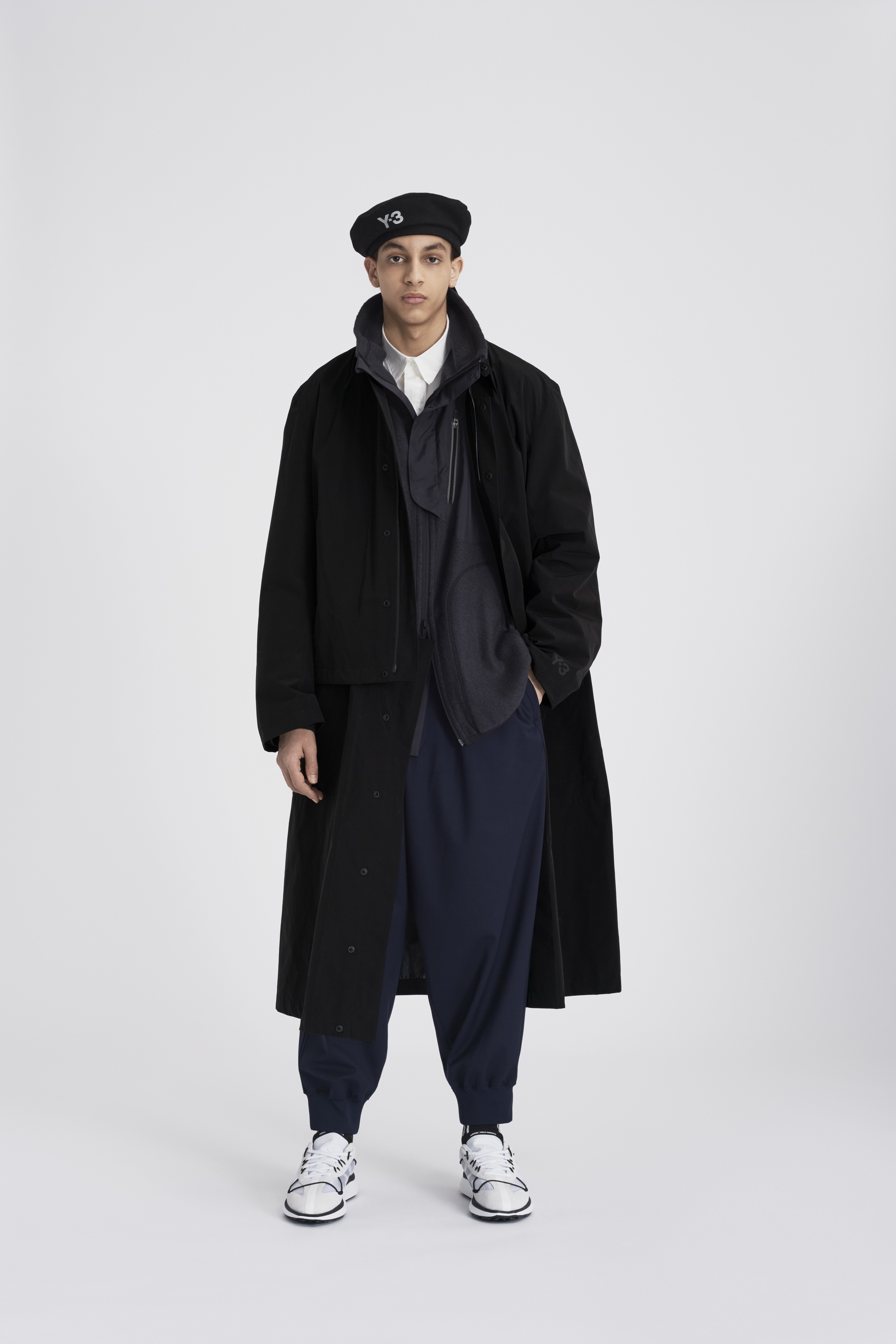 在2020秋冬系列第三个也是最后的一个章节中,Y-3 将传统体育中的实用性和当代都市户外运动的功能性相结合,巧妙地破译了对都市世界的探索。Chapter 3 第三章融合了复古与现代的户外面料和功能性设计细节。从传统的柔道服中汲取灵感,修长、保护性十足的层叠造型上覆以堆叠的标识和图案,完美呈现了Y-3品牌所代表的核心意向。本章中两款令人兴奋的鞋型,一款是采用了可拆卸adidas Primeknit袜套的最新进化版Y-3 RUNNER 4D IO,另一款则是全新运动靴Y-3 NOTOMA。