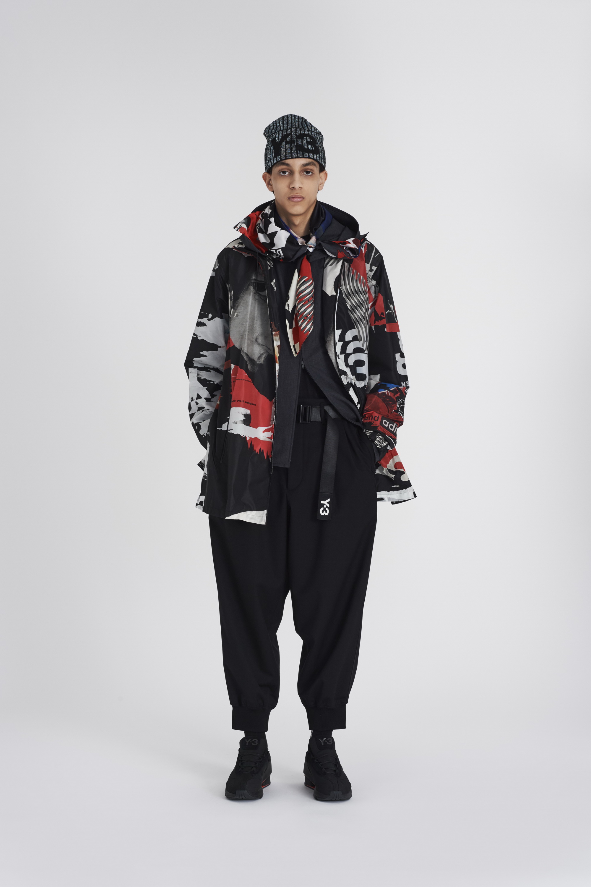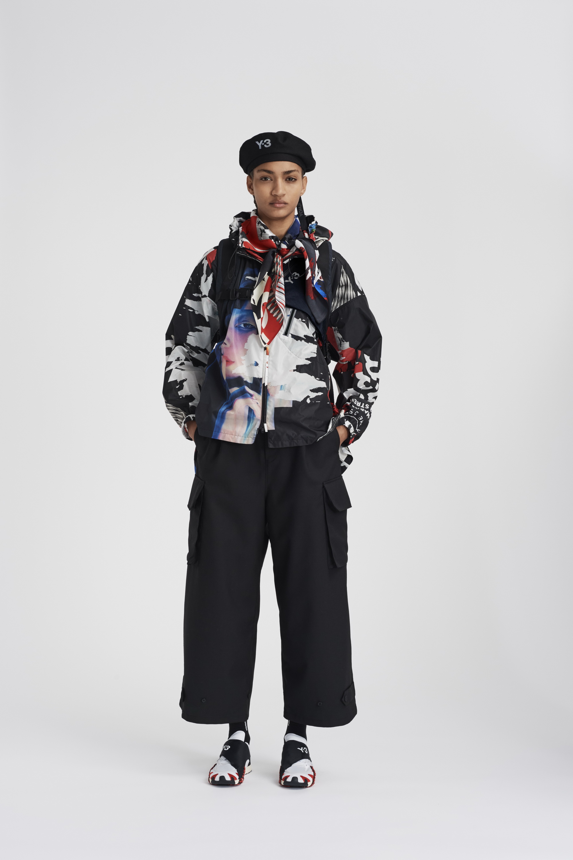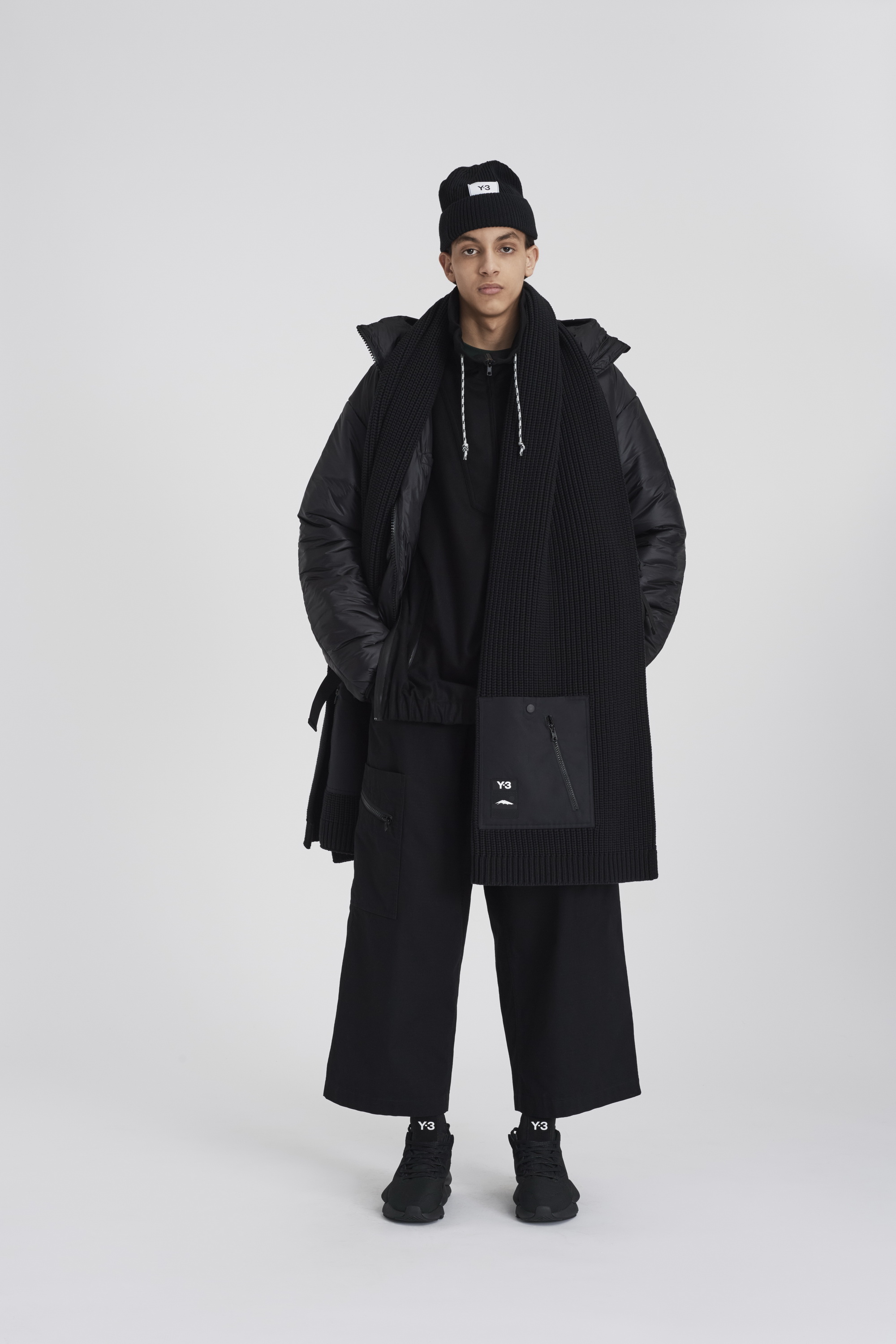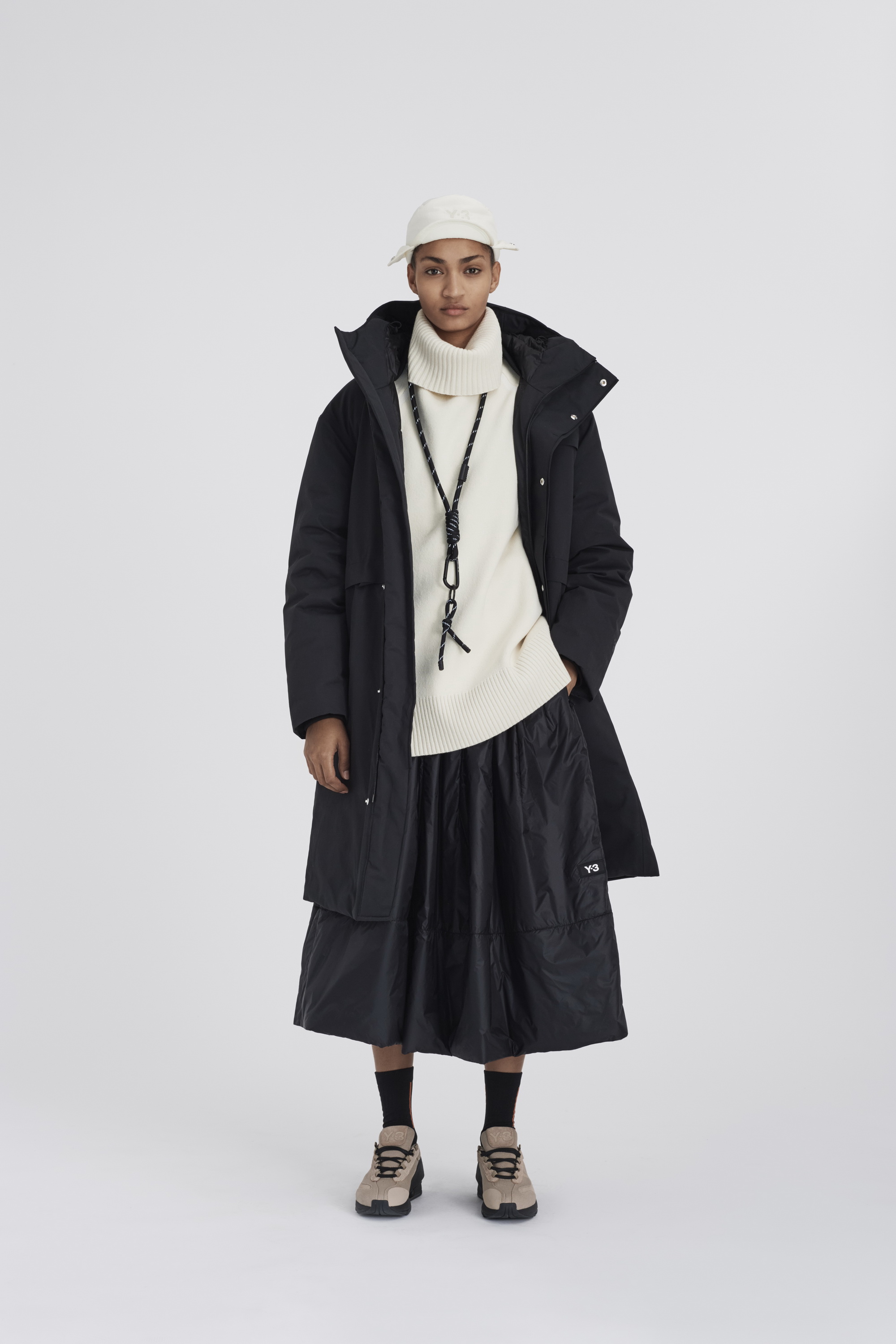 在2020秋冬系列第三个也是最后的一个章节中,Y-3 将传统体育中的实用性和当代都市户外运动的功能性相结合,巧妙地破译了对都市世界的探索。Chapter 3 第三章融合了复古与现代的户外面料和功能性设计细节。从传统的柔道服中汲取灵感,修长、保护性十足的层叠造型上覆以堆叠的标识和图案,完美呈现了Y-3品牌所代表的核心意向。本章中两款令人兴奋的鞋型,一款是采用了可拆卸adidas Primeknit袜套的最新进化版Y-3 RUNNER 4D IO,另一款则是全新运动靴Y-3 NOTOMA。