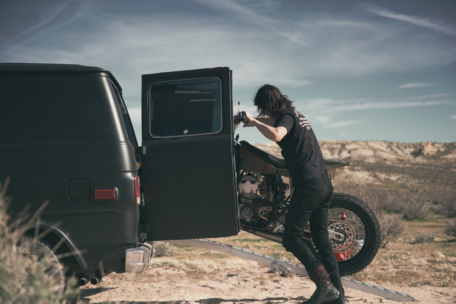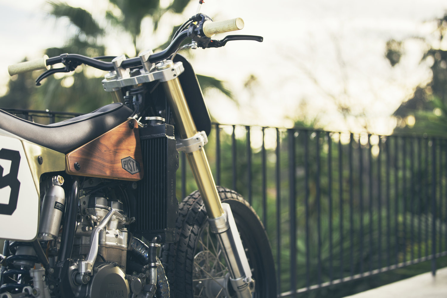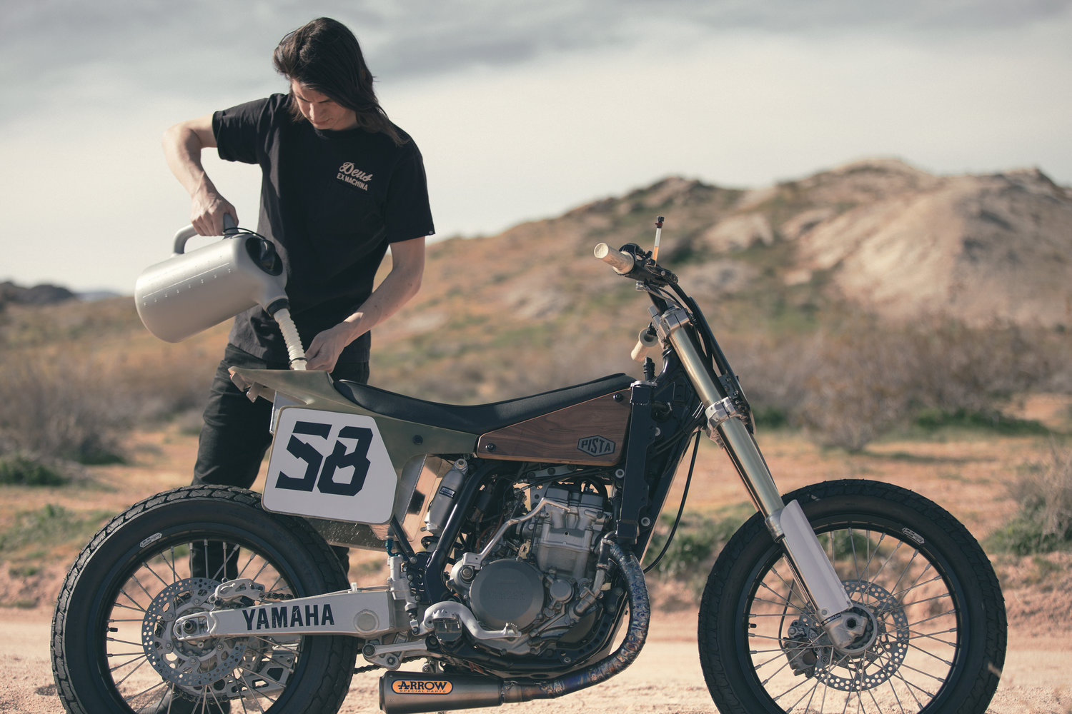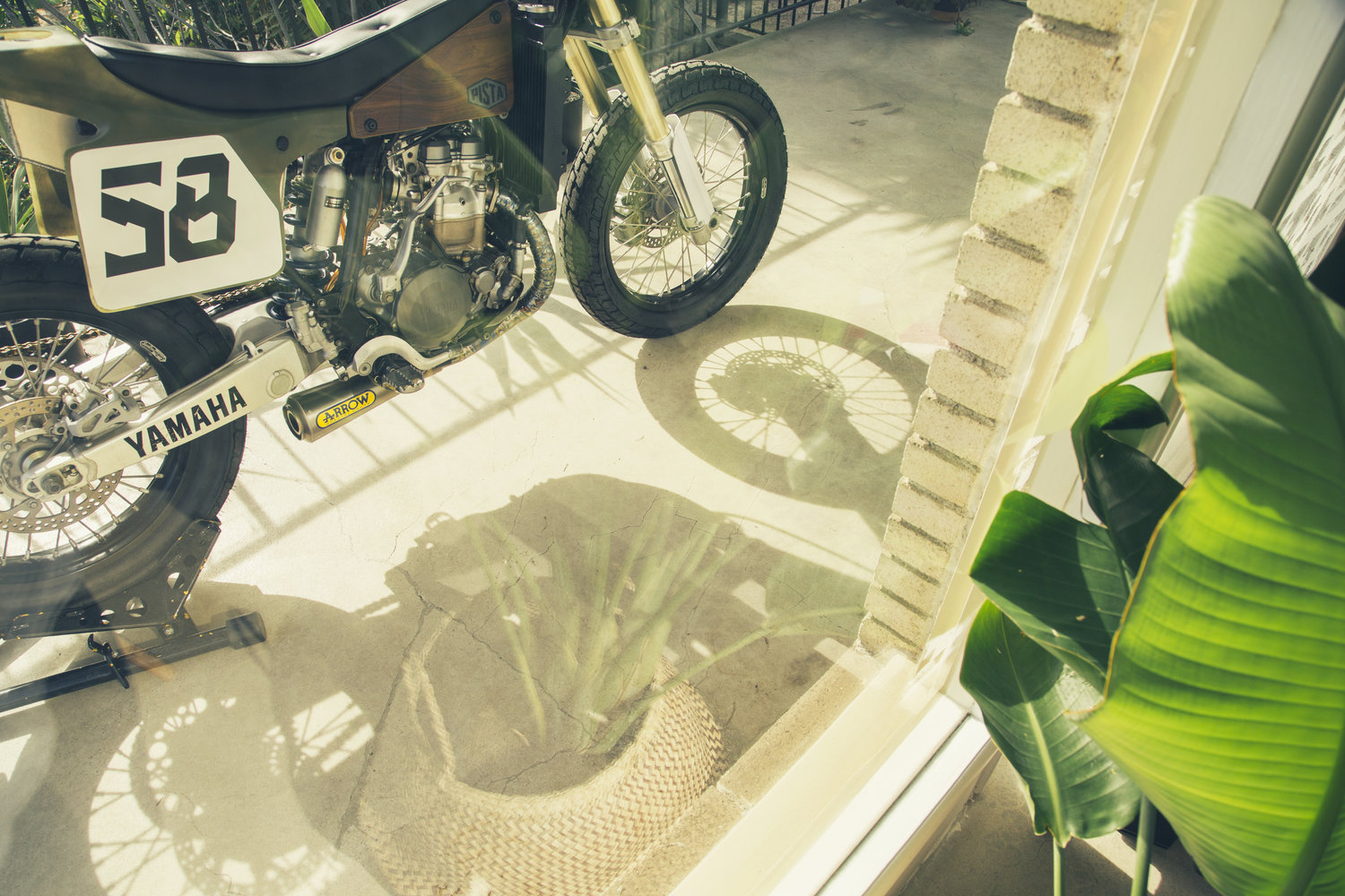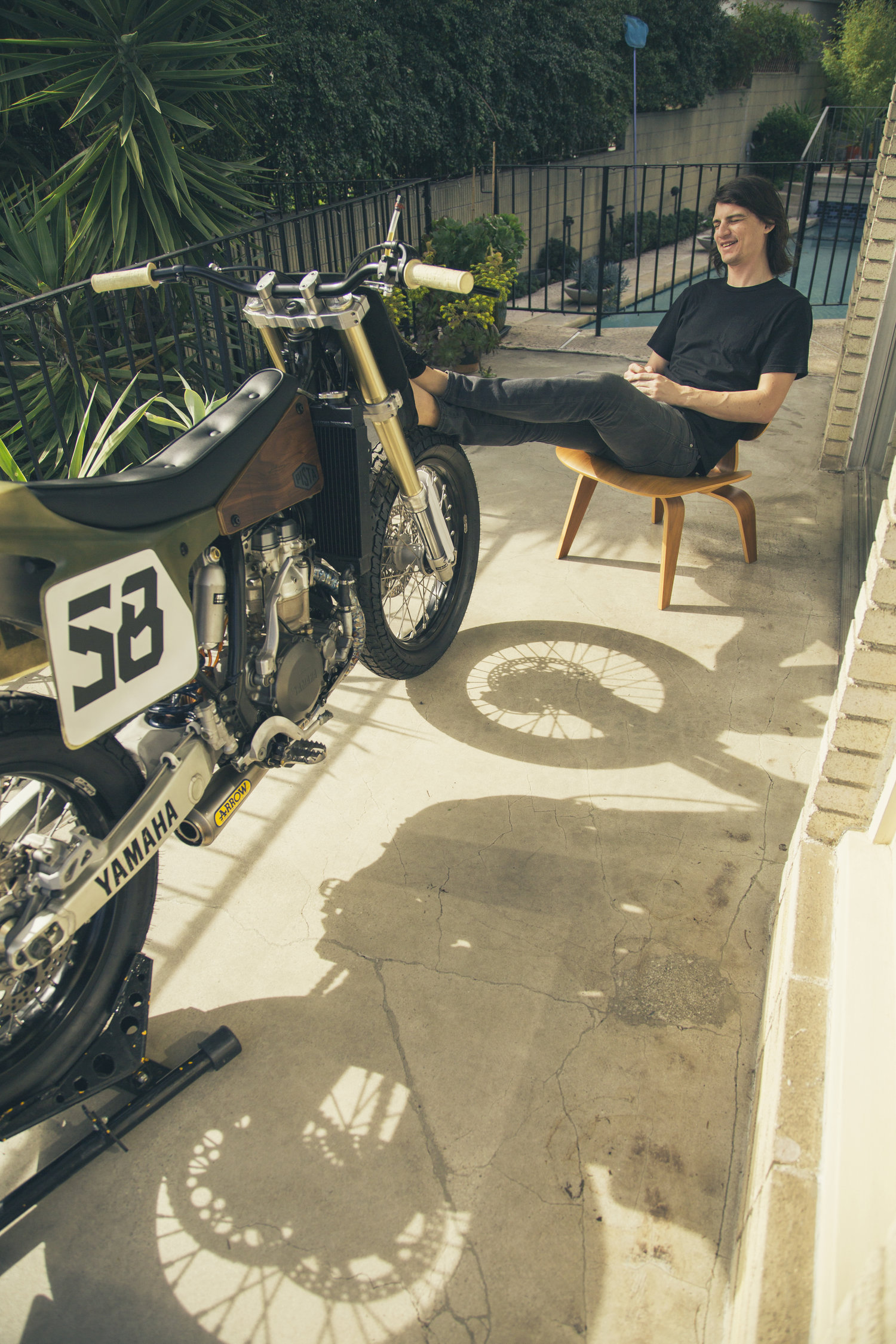 谈起这次改装Lindsay说到:“我们最初的设计思维是借鉴于复古家具,来打造出一个具有后现代主义设计的机车,让它除了可以适应正常的公路之外,也可以驰骋任何险恶的环境。WR400F这辆车其实也不算太老,它是由YAMAHA公司2000年左右生产的,其被赋予的使命本身就是为了探险沙漠地带而生。选择这个车型的另外一个主要原因是它在加州是可以合法上路的,再加上它轻巧灵活的车型也更容易改装一些。”