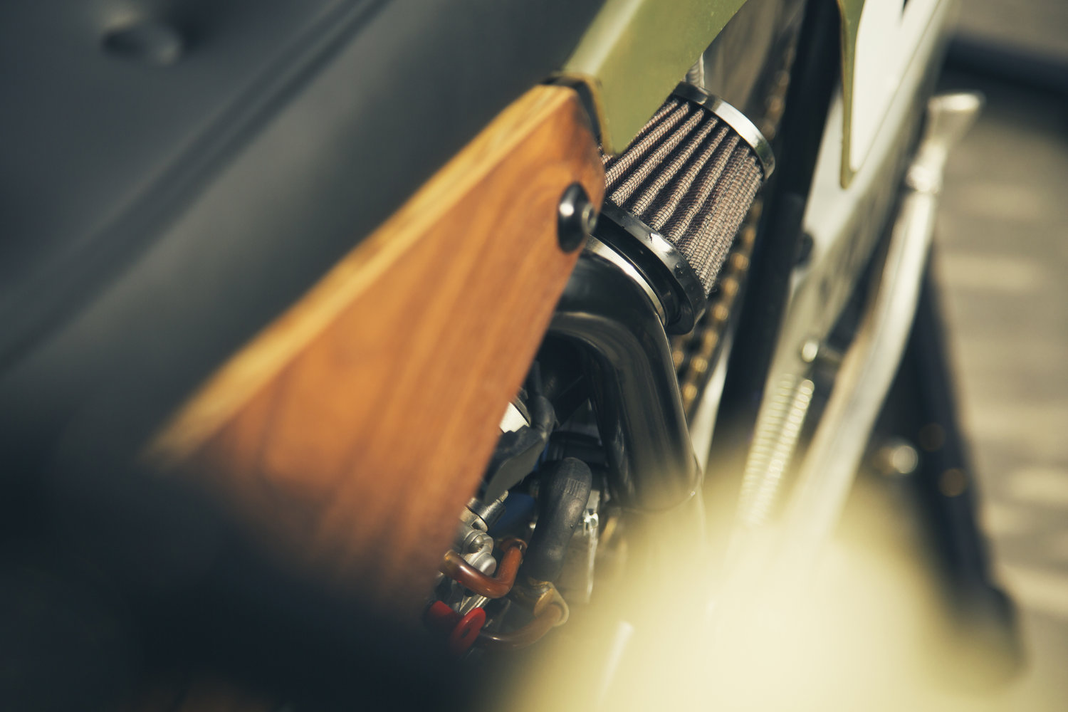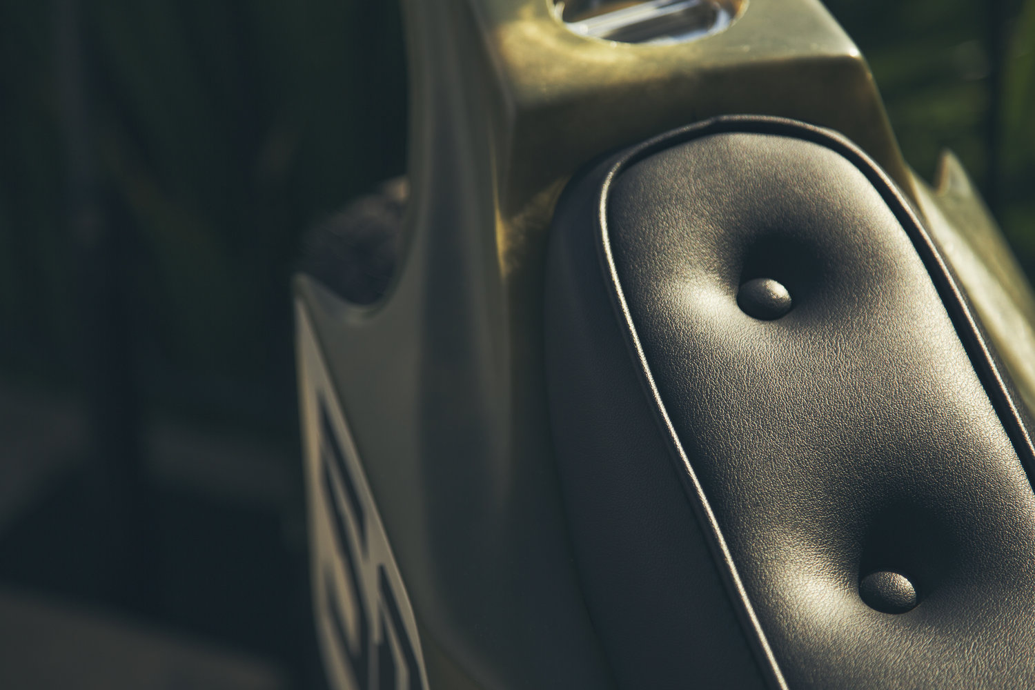 这款改造后的复古机车油箱由铝合金复合材料专门打造,位置被安放在座椅后部,改变了油箱的位置之后整体车辆会显得更加修长而轻巧,造型变得更具现代感的同时骑手的骑行重心也更靠向前方位置。