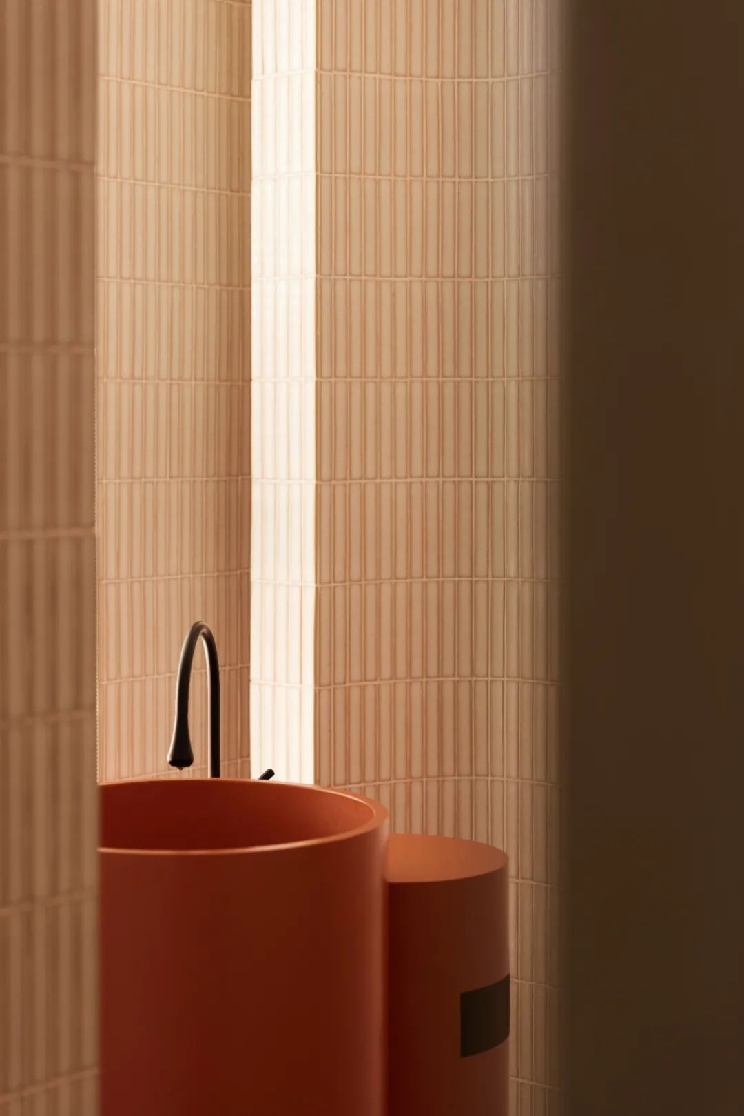 二三层空间作为品牌办公区域,以线性语言构成理性的空间秩序,暗喻品牌在产品研发用料和工艺上的严谨,光与水影的引入,又赋予这个空间不失柔和之美。