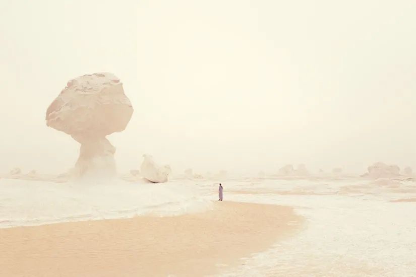 埃及有名的白沙漠之上布满风化的白垩岩。
