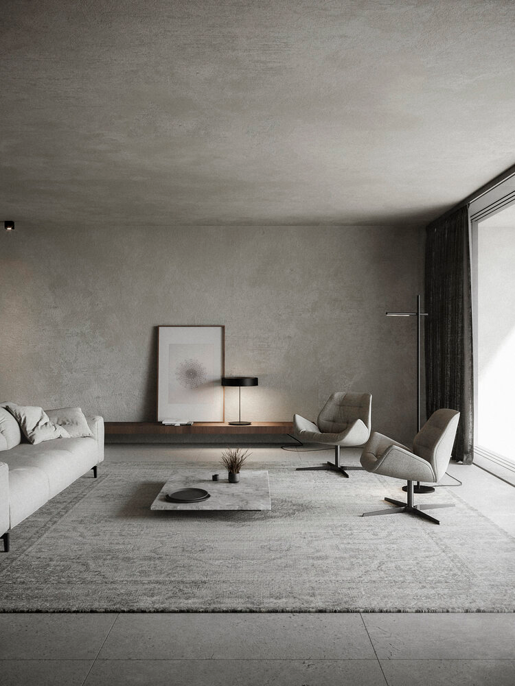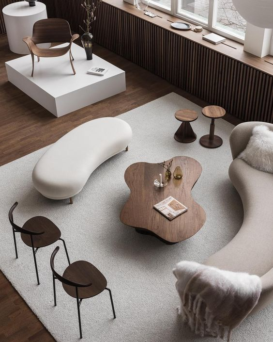 地毯、沙发也是适合灰白沾染的物件,天然木材带来的深棕与浅驼,各有各的绝妙。