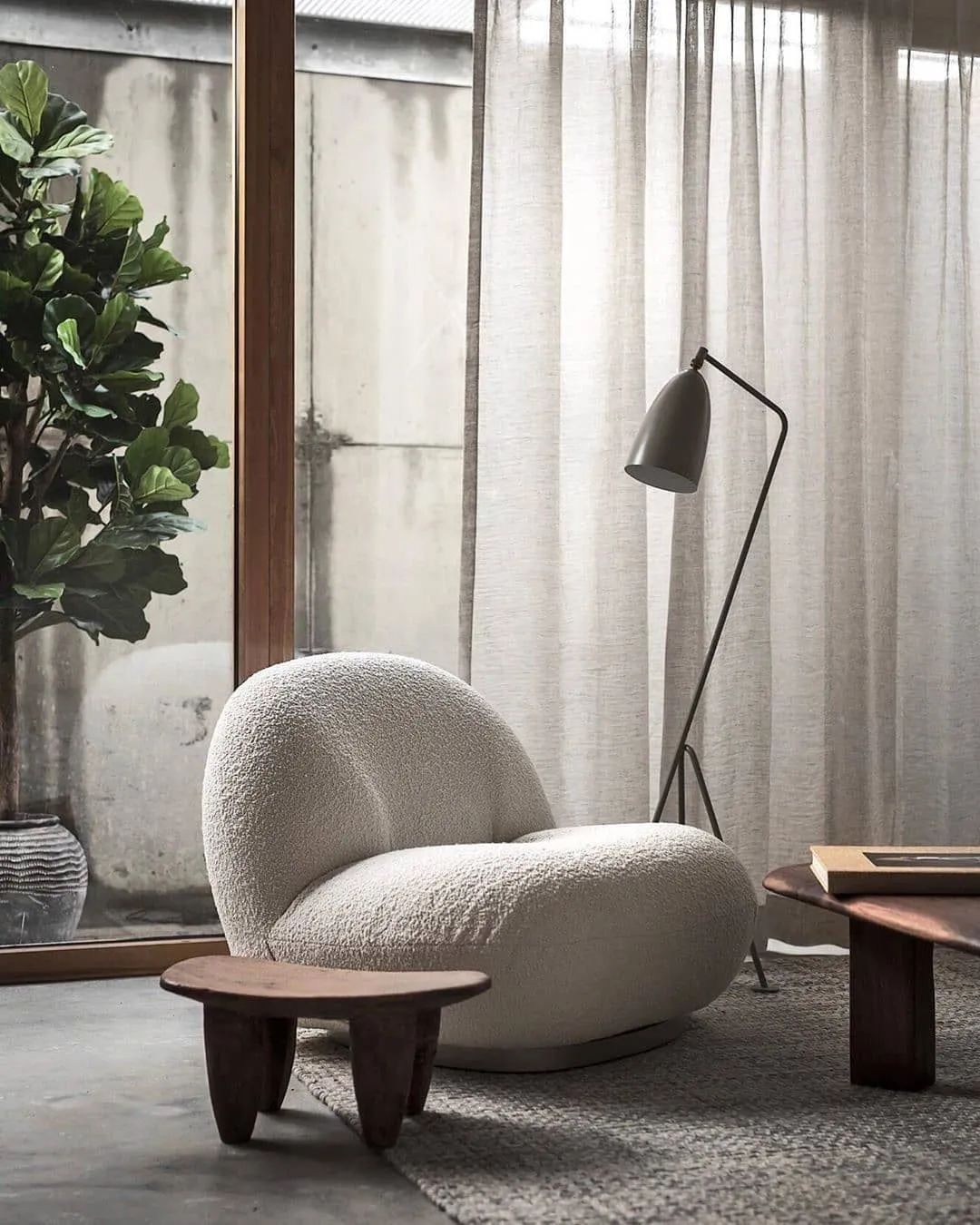 同样取之自然的大地色遇见灰白色,会加重二者给人的质朴感受,如今很多人选择wabi-sabi侘寂风,就是追求这种舒适至上、简单不做作的调调。