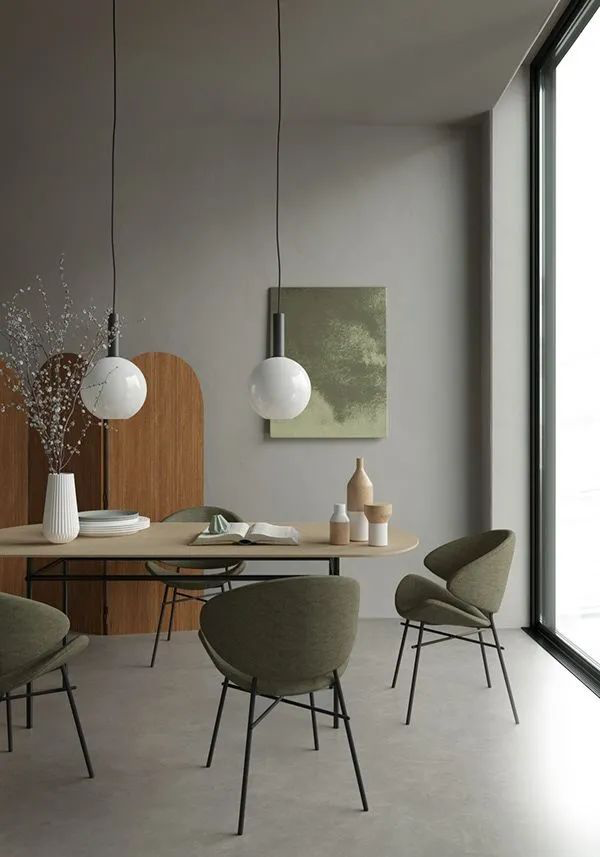 灰白墙面搭配深浅不一的绿色,让空间多了自然之气。