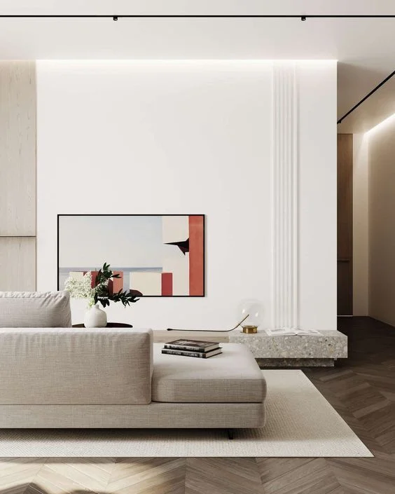 还有一种方式就是用色块装饰灰白空间。