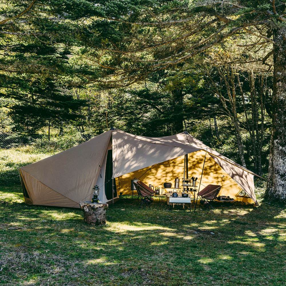 帐篷的购买选择中整体蓬面材质一直是考量的因素之一,Zane Arts采用了新型材质将防水层使用矽涂料与布料相结合,无需层层堆叠大幅减轻了整体重量,其最大的型号GIGI-2在可容纳4人住宿外,还拥有很大的公共区域,可收纳后重量仅为7.5kg。在外形方面更是Zane Arts的拿手好戏,金字塔型的帐篷结构,使用了类似知名帐篷NEUTRAL OUTDOOR的结构无需众多营绳子进行固定,仅需简单几步即可完成。